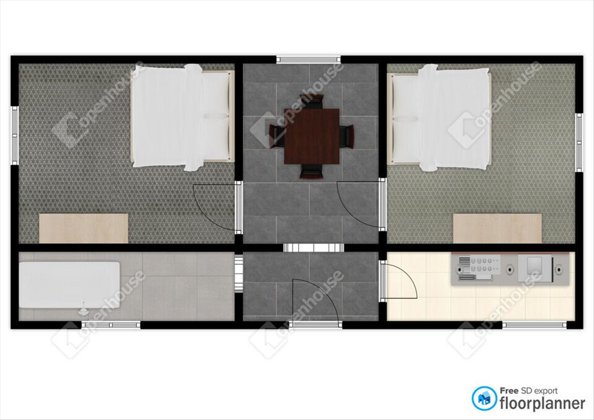 Az otthon két kellemes méretű szobával, világos közlekedővel, egy praktikus, hangulatos kis konyhával, otthonos nappalival és fürdőszobával rendelkezik. a ház igazán barátságos atmoszférát áraszt – ide öröm hazaérni!