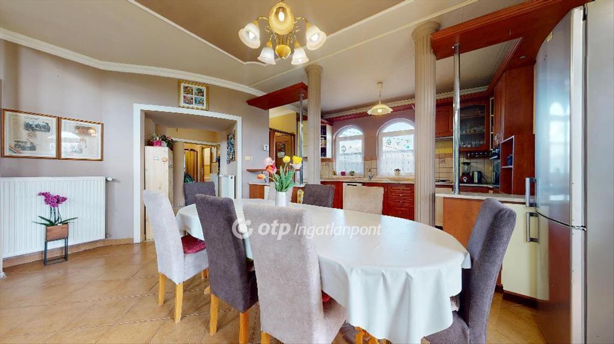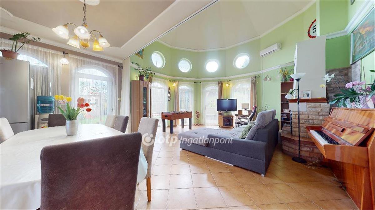 Kazincbarcika kedvelt részén 2006-ban épült, 3 szintes, 4 szobás, amerikai konyhás, örök panorámás családi ház eladó 932 m2 telken. a ház minőségi építőanyagok felhasználásával készült, falazata 30-as ytong, kupolás kialakítással, cserép tetővel. a földszint 119 m2 alapterületű, ahol a tágas konyha-étkező-nappali hatalmas kupolás belmagassággal rendelkezik. Ezen kívül spájz, közlekedő, 3 hálószoba, nagy fürdőszoba, wc kapott helyet. a nappaliból és két hálószobából kijárat van a teraszra, ami körbe öleli az alsó szintet. a tetőtér beépített, 56 m2-en egy légterű szoba, nagy fürdőszoba és két tárolóként használt padlásrész található itt. a ház alatt 76 m2-en dupla garázs elektromos kapuval, mosókonyha, kazánház, tároló, és 3 személyes finn szauna működik zuhannyal. a szobák laminált parkettával, egyéb helyiséget járólappal fedettek. Az otthon melegét gázkazán biztosította, hőleadás radiátorokon, a hidegburkolatokon padlófűtéssel. 2020-Tól már 4 db hűtő-fűtő klíma gondolkodik a kellemes hőmérsékletről minden évszakban. Télen meghitt hangulatot ad a nagy méretű hagyományos kandalló a nappaliban, ami be is fűti a teret.