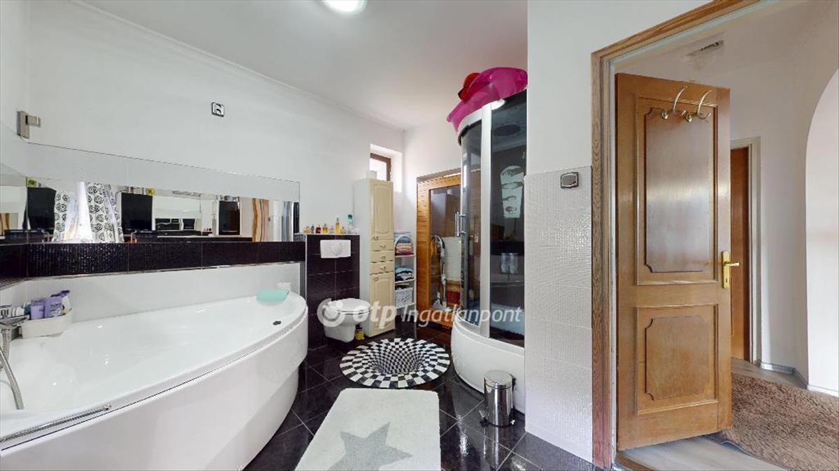 Dupla komfortos, klímás, szaunás, 2 szintes családi házat kínálok eladásra 2 fedett terasszal, 2 garázzsal, gyönyörű panorámával a környező dombokra! Az ingatlan 1980-ban épült szilikát és tégla falakkal, műemlék pala tetővel, fa hőszigetelt nyílászárókkal. Az otthon melegéről takarékos gázkazán, vegyes tüzelésű kazán és inverteres klíma gondoskodik, a meleg vizet villanybojler biztosítja. Az alsó szinten a teraszról nyílik a klímával felszerelt tágas nappali, itt található a nagy méretű konyha, spájz, fürdőszoba, az utóbbi sarokkáddal, zuhanykabinnal, és szaunával felszerelve. Az emeleten 2, 5 szoba, fürdőszoba (zuhany, wc), és fedett terasz kapott helyet, ahonnan panorámás kilátás nyílik a környező dombokra. Az emeleten 2 szoba padlószőnyeggel, egy laminált padlóval burkolt. a ház alatt 2 nagy garázs, tárolók, wc. Az udvaron épített szalonnasütőhely, pihenősarok. Tökéletes választás lehet nagyobb családnak is.