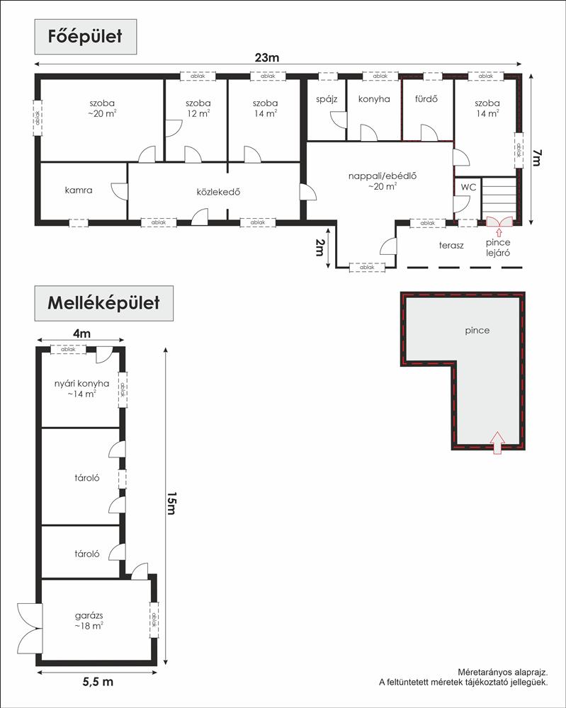 -Medence, műhely vagy további építmény kialakítására alkalmas;