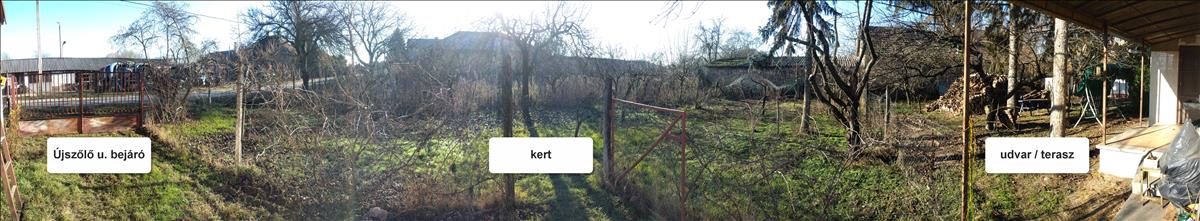 Teljes telekterület (lakóház + udvar + kert): 1612 m²