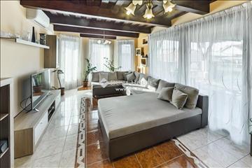 A lakószinten 4 szoba + nappali tágas konyha – étkező, kialakított fitnesz terem, szauna, fedett terasz.