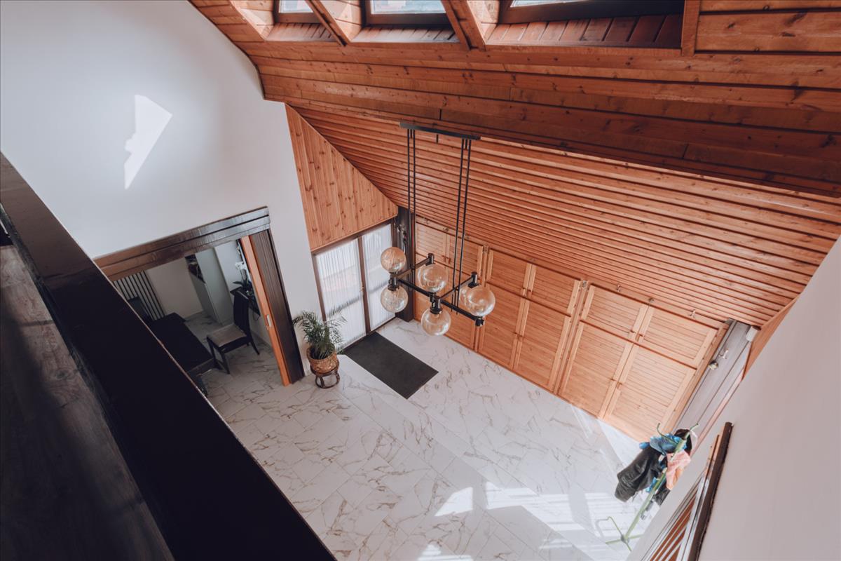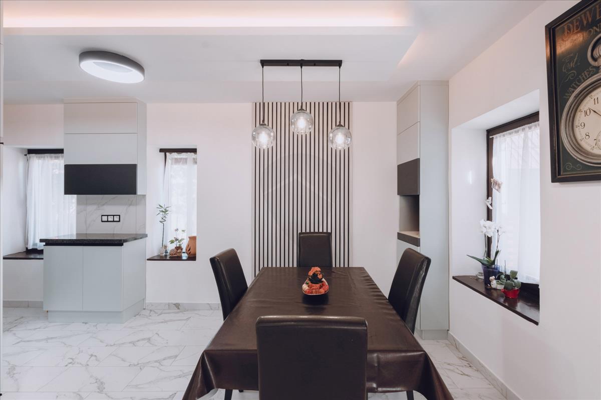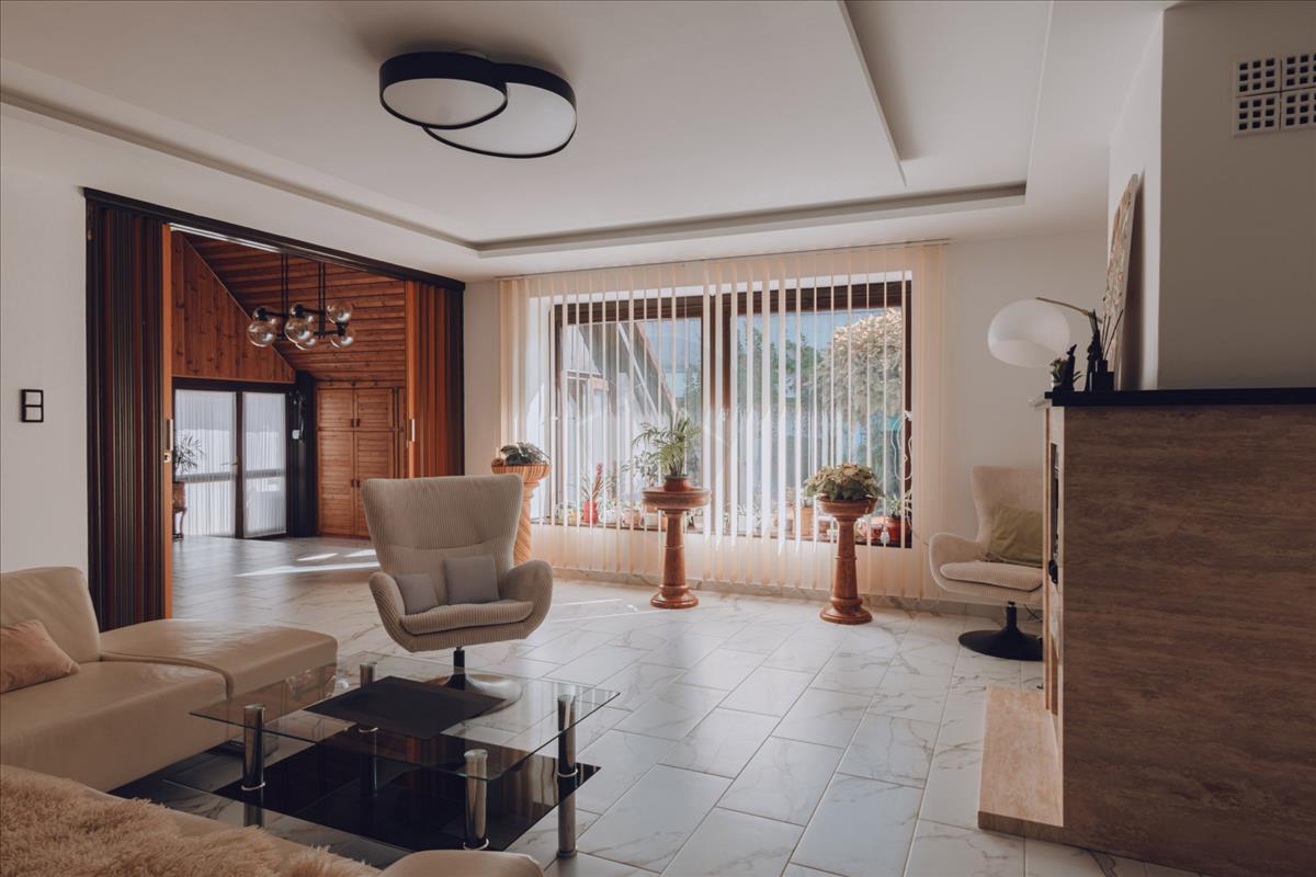 - a házban a világos falak és a nagy ablakok a tágas tér érzetét keltik, sok bejutó fényt biztosítva ezzel.