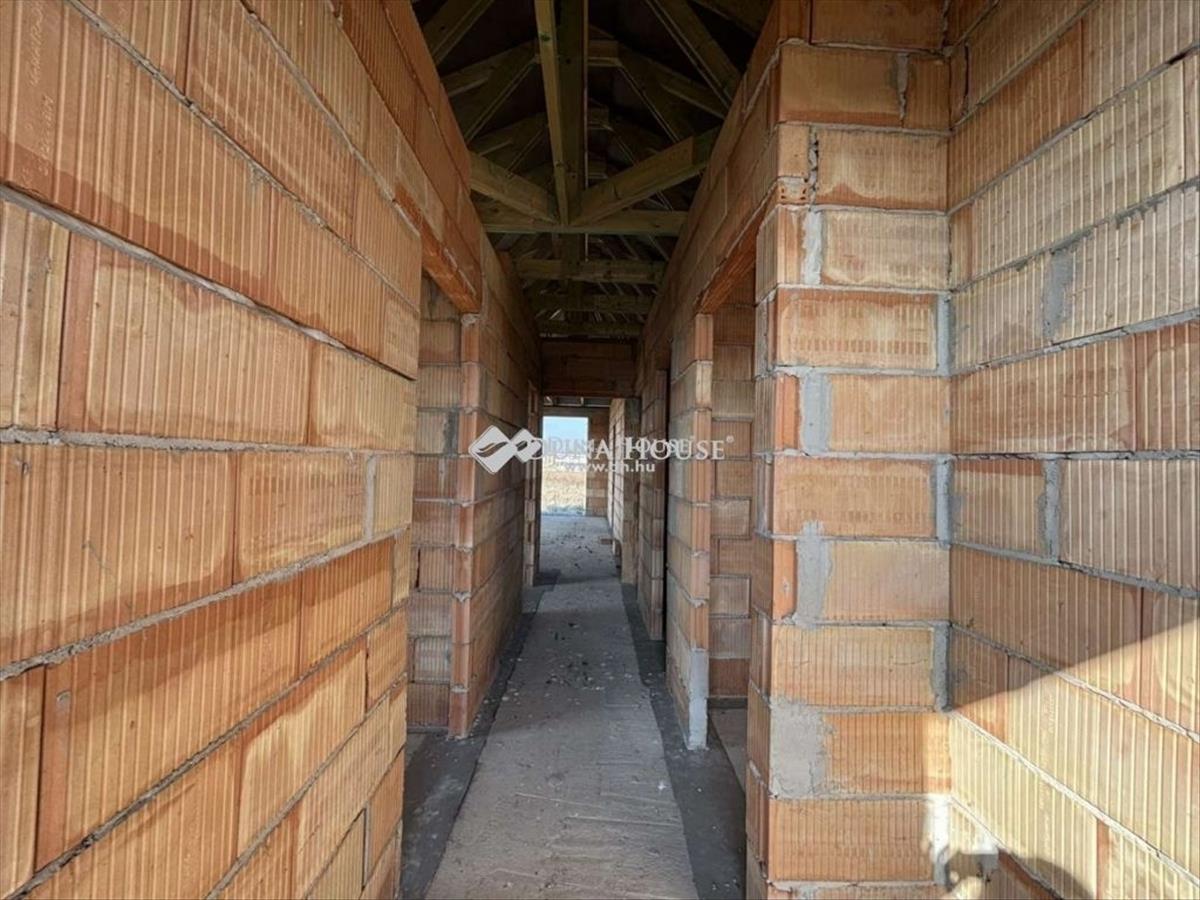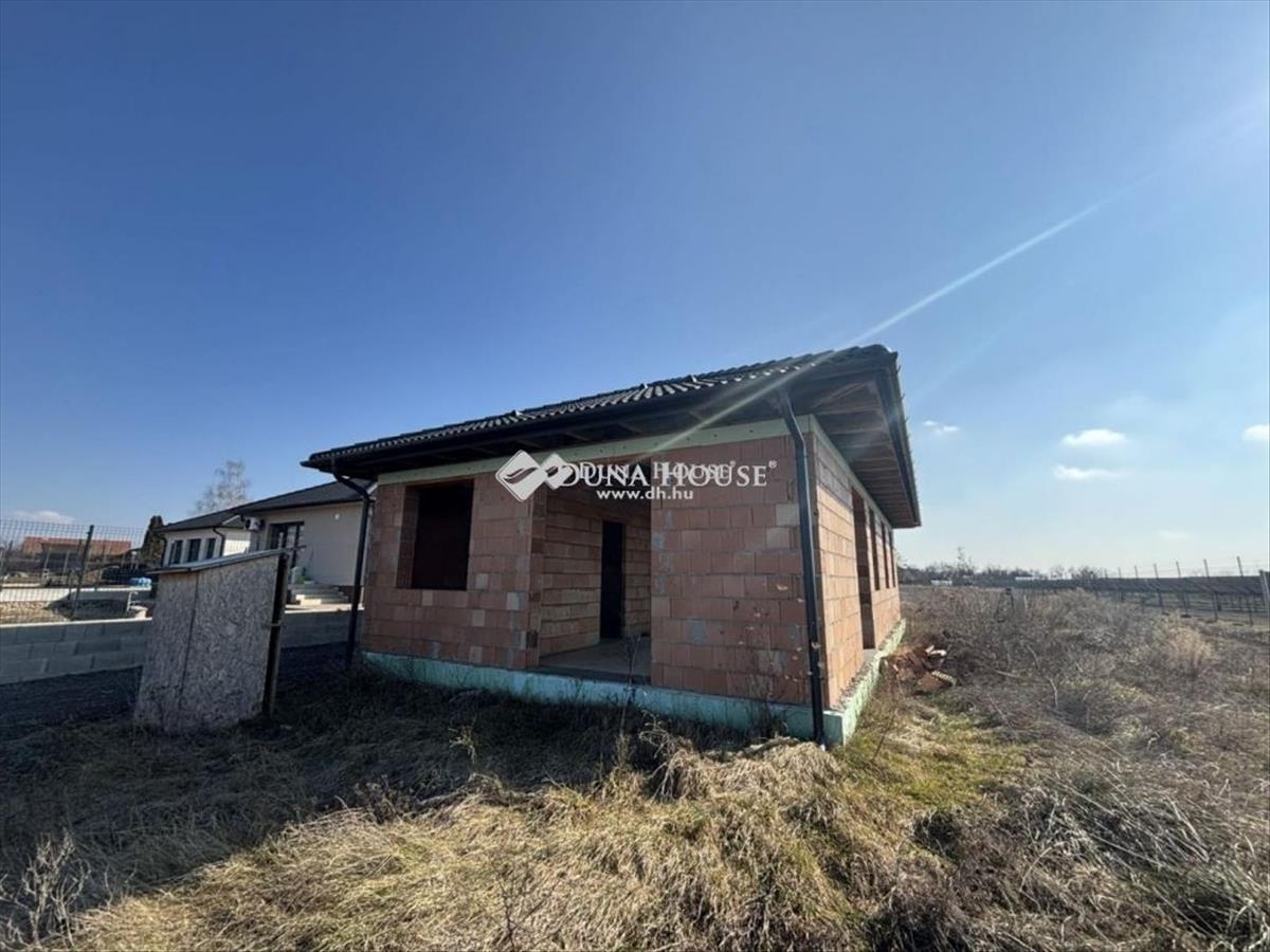 Eladó egy 2023-ban épült, félkész családi ház. a telek összterülete 846 m², melyből 169 m² közös használatú út. a telken egy befejezésre váró ház áll, körülbelül 300 méterre az aszfaltos úttól (mart aszfaltos útszakaszon keresztül közelíthető meg). a ház masszív tégla falakkal és belső válaszfalakkal rendelkezik, biztos alapot teremtve a további munkálatokhoz. Az antracit szürke cseréptető modern és esztétikus megjelenést kölcsönöz az épületnek. Az utca utolsó házaként csendes, nyugodt környezetet kínál, ideális választás azok számára, akik szeretnék saját elképzeléseik szerint befejezni otthonukat. Az ingatlan főbb paraméterei:-90 m2 hasznos alapterület, -4 szoba + nappali, konyhával, -szülői háló saját fürdőszobával és gardróbbal, -2 fürdőszoba, -háztartási helyiség, -kamra, -vendég WC, -előszoba, -színezett acél ereszcsatorna-rendszer-teherhordó falazat: Wienerberger Porotherm Profi 30 X-Therm tégla-válaszfal: Wienerberger Porotherm 10 tégla válaszfalKözművek: Gáz: ingatlanban Villany: ingatlanban Csatorna: derítő kerül kiépítésre Víz: ingatlanbanEz az ingatlan kiváló lehetőséget nyújt arra, hogy saját igényei szerint fejezze be és alakítsa ki álmai otthonát. További részletekért kérem keressen!A teljes Duna House ingatlan kínálatával állok rendelkezésére. Keressen bizalommal. FIX 3% lakáshitelre megvehető