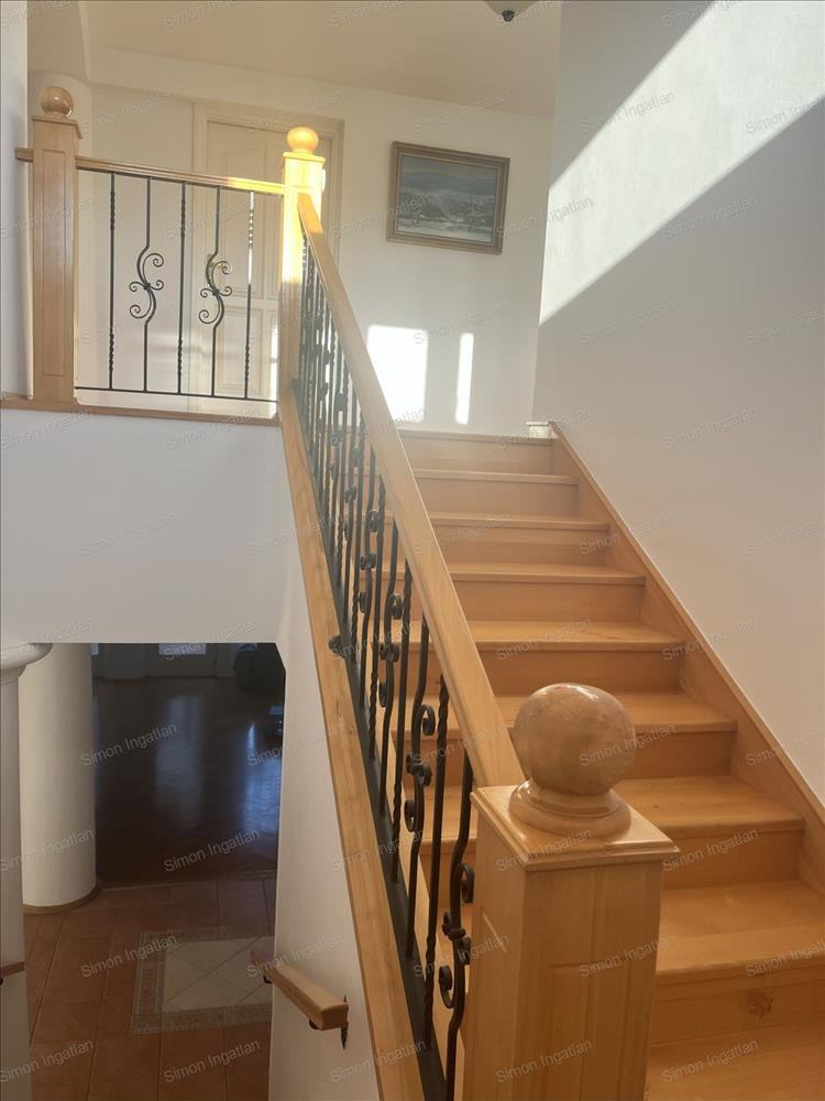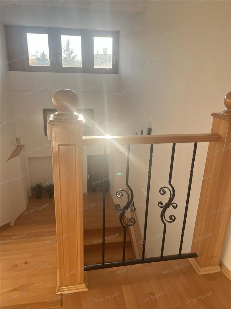 Az emeletre egy kényelmes, fa lépcsőn egy tágas, világos lépcsőházon keresztül juthatunk fel.
