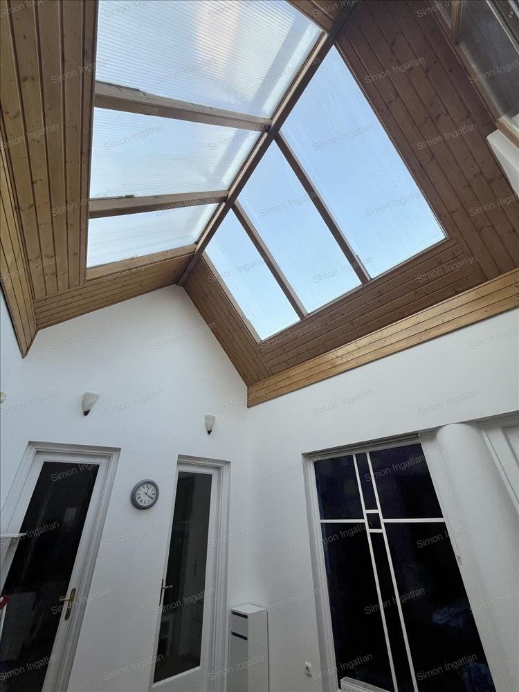 Az előszoba beépített, járható gardrób szekrénye, a plafonba épített egyedi üveg berakás, a szauna részleg külön tusolóval, a fedett átriumos szabadidős helyiség, a nagyméretű, kertkapcsolatos tároló helyiség is mind-mind az eleganciát és a rendezettséget tükrözik.