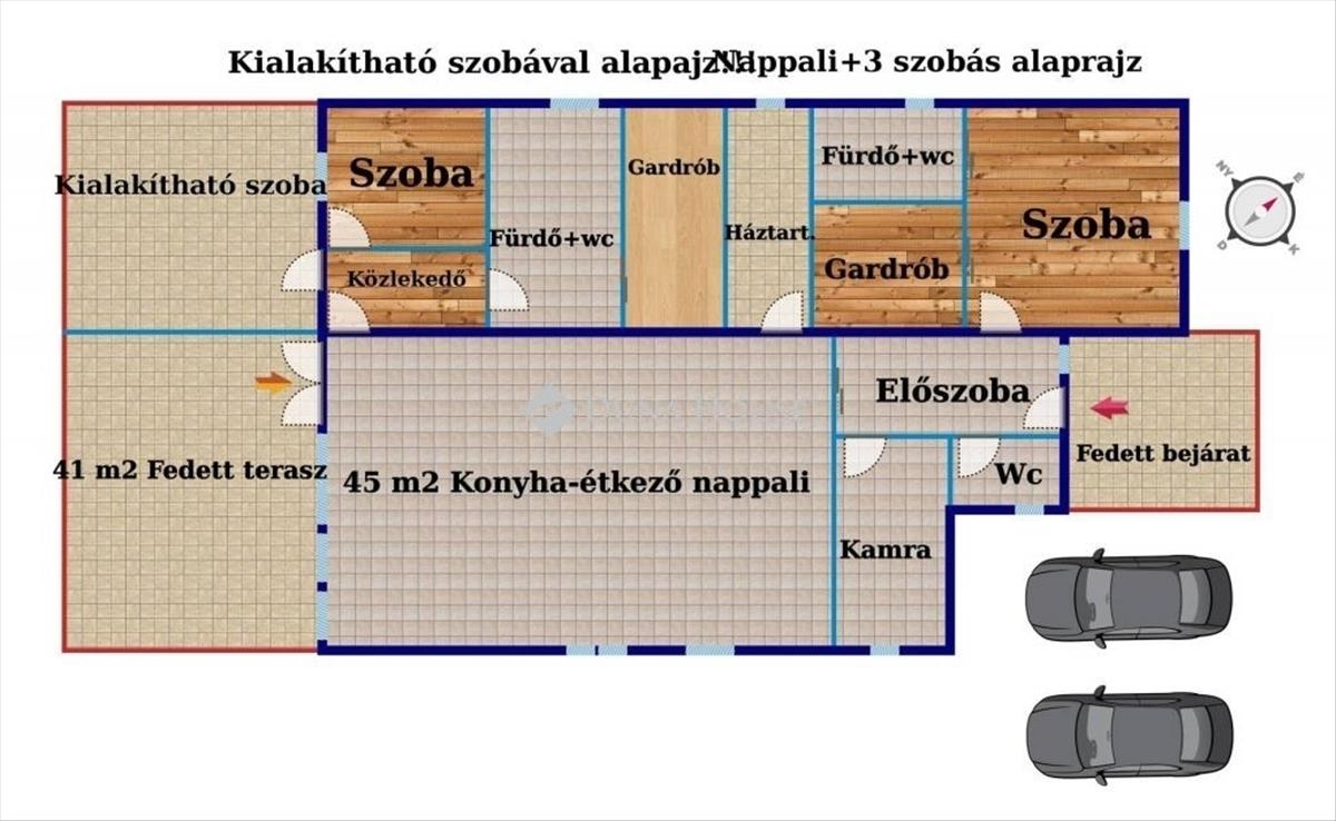 124 m² lakótér + 41 m² fedett terasz (igény szerint akár be is építhető, pl. Plusz szobának)