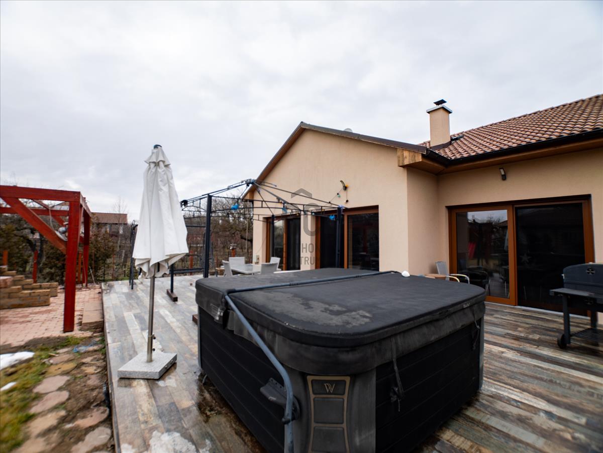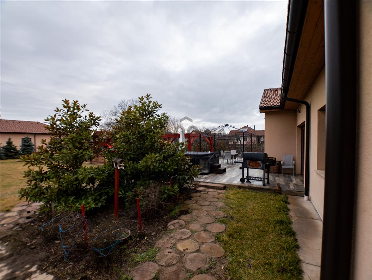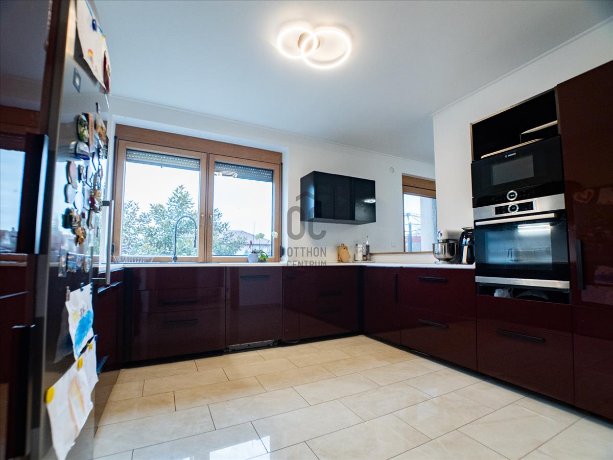 Kecskemét-máriahegy városrészében, a Nyíri úton egy igazán különleges ingatlant kínálunk eladásra, amely tökéletes választás családosok számára, akik egy tágas, kényelmes otthonra vágynak. Ez a használt ház 230 négyzetméteres alapterülettel rendelkezik, és egy 1942 négyzetméteres telken helyezkedik el, így bőven van hely a gyerekeknek a szabadban való játékhoz, vagy akár egy szép kertrész kialakításához. a házban négy szoba található, így minden családtagnak jut saját tér, legyen szó dolgozószobáról, vendégszobáról vagy gyerekszobáról. Két fürdőszoba teszi kényelmessé a mindennapokat, különösen a reggeli rohanás során, amikor mindenki egyszerre készülődik. a 65 négyzetméteres terasz ideális helyszín a családi összejövetelekhez, a baráti grillezésekhez, vagy csak egyszerűen a pihenéshez, miközben a gyönyörű panorámát élvezed. Az ingatlan kiváló állapotban van, modern, minimalista kialakítással, amely lehetővé teszi, hogy könnyedén a saját ízlésedre formáld. Az elektromos infra fűtés biztosítja a kellemes hőmérsékletet télen és a minimalista kandalló csodás látványt és meleget biztosít. a garázsban két autó kényelmesen elfér, így a parkolás nem jelent problémát. Máriahegy csendes, családbarát környéke nemcsak a nyugalmat, hanem a biztonságot is garantálja, így ideális választás a gyerekek neveléséhez. a közlekedési lehetőségek is kiválóak: a város központja gyorsan elérhető autóval.