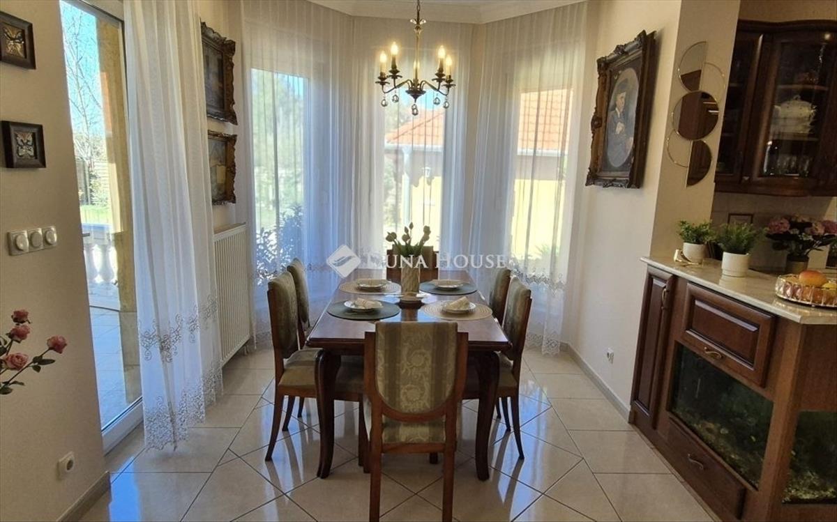 Exkluzív családi ház eladó Kecskeméten a Vacsiközben! Nyugodt, kertvárosi környezetben kínálom eladásra ezt a 2004-ben épült különleges családi házat. a 760 m2-es telken elhelyezkedő téglaépítésű ház tágas, amerikai konyhás nappalival és étkezővel, valamint 3 szobával és egy háztartási helyiséggel is rendelkezik. a gyönyörű konyha modern, beépített Bosch gépekkel lett felszerelve. Az otthon melegét új kondenzációs gázkazán, valamint egy különleges kandalló biztosítja. a körbekerített, elektromos kapuval felszerelt, parkosított udvaron található a 30 m2-es többállásos garázs, valamint alatta a 30 m2-es pince. Az öntözőrendszerrel rendelkező kert térkővel borított részén további autók beállására van lehetőség. a kert nyújtotta örömöket tovább fokozza a hangulatos fedett terasz, grillezési lehetőséggel. Önnek ajánlom ezt az igazán különleges házat, amennyiben családjának keresi a tökéletes otthont, a belvárostól néhány perces autóútra, mégis nyugodt, kertvárosi környezetben. Az ingatlan per- és tehermentes, rövid időn belül költözhető. Az ingatlan személyes megtekintése előre egyeztetett időpontban lehetséges. FIX 3% lakáshitelre megvehető