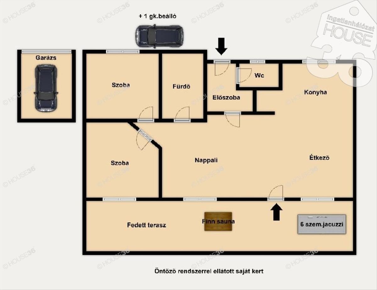 Kecskeméten, Kadafalva elején, 2019. Évi, szigetelt, tégla építésű, 75 m2-es, nappali+ 2 szobás szélső sorház, saját nagyobb kerttel, garázzsal és zárt udvari beállóval eladó! Akár teljesen bútorozva (benne jacuzzi, finn szauna).