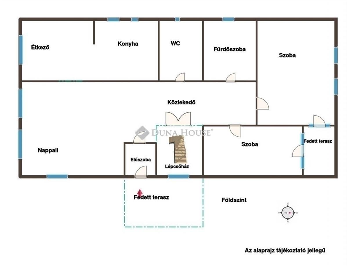 A oldalsó fedett teraszról juthatunk be az ingatlanba, mely földszinti részén található 1 hangulatos nappali, ahol egy téglakályha teszi még meghittebbé az ott töltött időt. a nappaliból nyíló étkező és konyha világos és tágas. 2 Nagyobb szoba is helyet kapott, illetve egy fürdőszoba és egy wc, melyek a közlekedőből nyílnak.