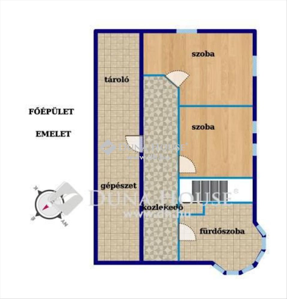 A földszinten dupla beállási lehetőséggel nagy garázs, nappali, étkező, konyha, fürdőszoba, az emeleten hatalmas igényes fürdőszoba, 2 hálószoba, valamint egy akár 3. Hálószoba kialakítására is alkalmas tetőtér van, jelenleg tárolásra alkalmas.