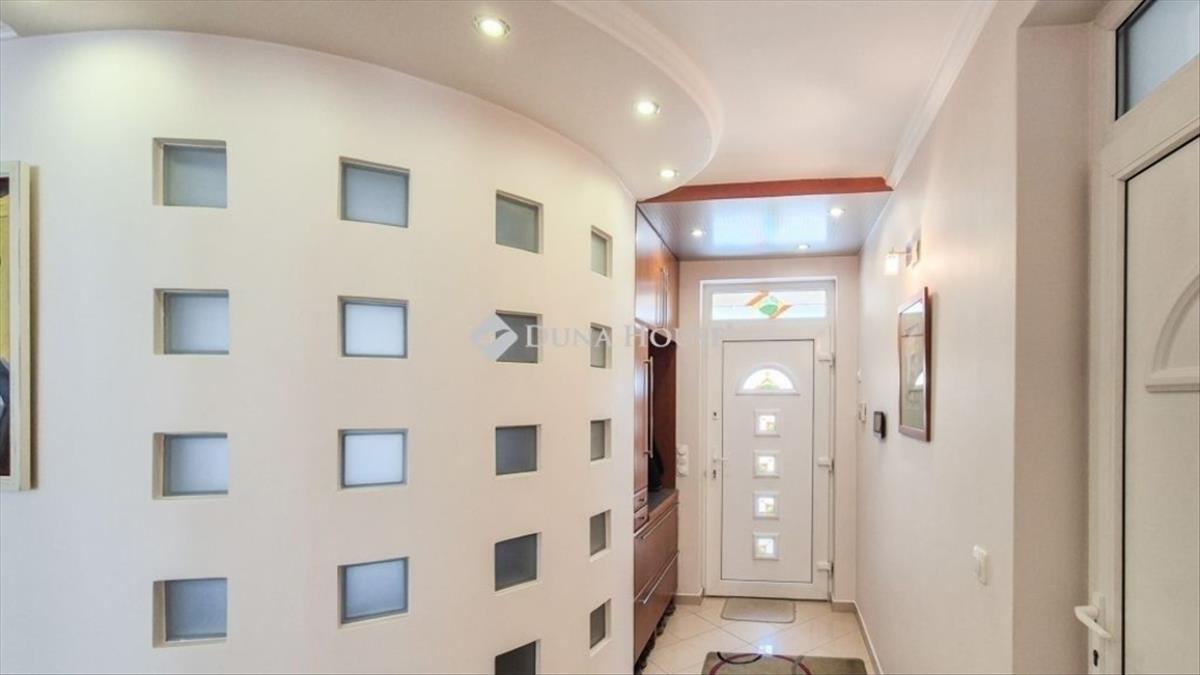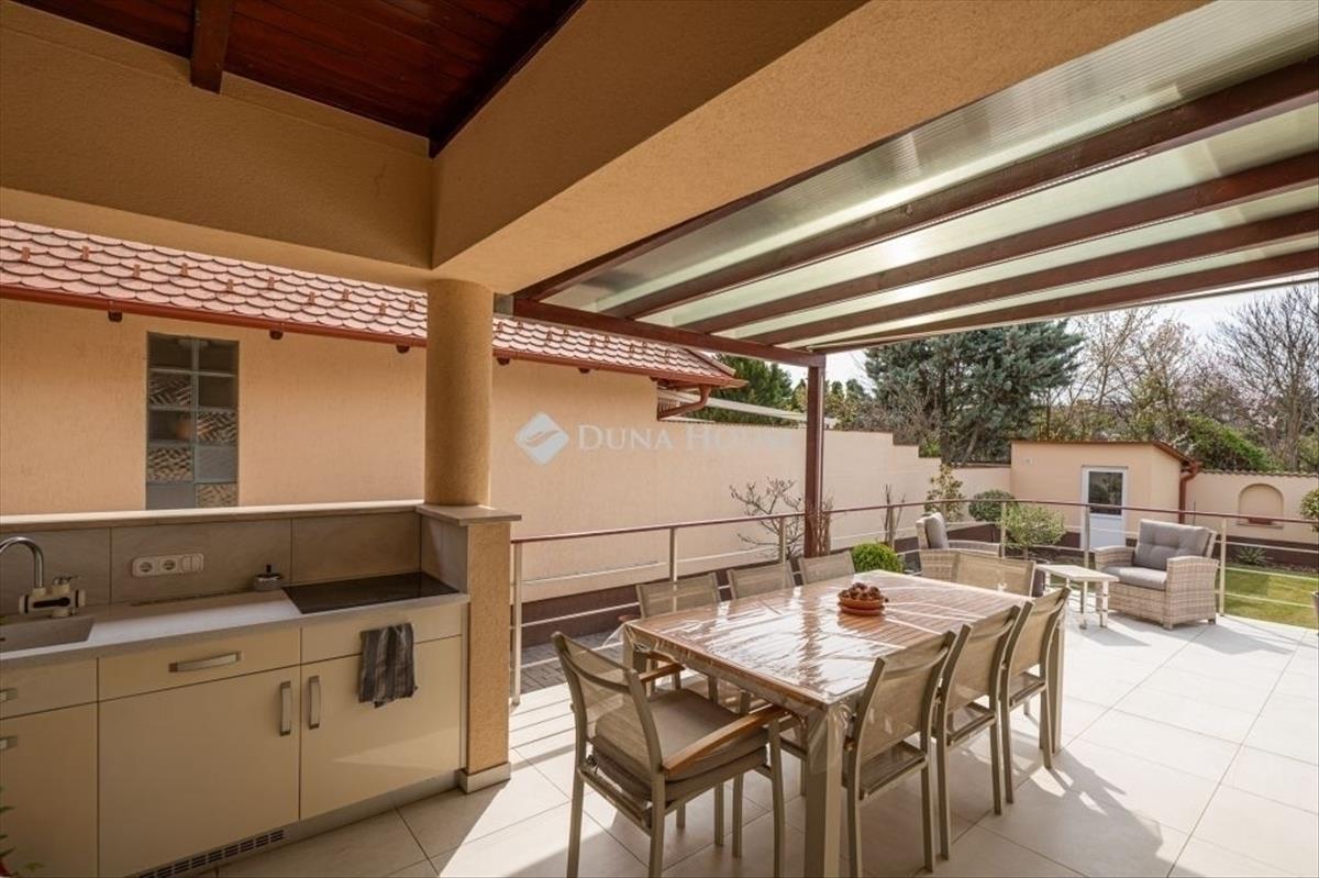 Eladó Kecskemét Hollandfaluban magas minőségben megépített összesen: 269 nm -es, nappali + 3 szobás, napelemes családi ház, lakható pincével, jakuzzival, szaunával, dupla garázzsal, 473 nm önálló telken. Tudatos tervezés, élhető terek. Lakótér 135nm , garázs 32nm , pince 50nm , teraszok 65nm elosztásban + 60nm tetőtér beépíthető. Az ingatlan tervezésénél és a belső terek kialakításánál elsődleges szempont volt a világos, tágas élettér megteremtése, valamint a kerttel való közvetlen kapcsolat biztosítása. Az épületben közvetlenül az utcáról megközelíthető 32 nm -es, kétállásos garázsba érhetünk, valamint a lakóépület alatt 50 nm -es lakható pince, ami alkalmas további tárolónak, közösségi szórakoztató helynek is. a padlástér további beépítésre alkalmas, kiépített lépcsővel, közműkiállásokkal, 2-3 szoba és fürdő kialakítására. Főbb jelllemzők:- 50 nm -es tágas világos amerikai konyha + nappali-étkezővel- 3 külön nyíló hálószoba- gardrób- egyedi gyártású fa beltéri ajtók és beépített bútorok- 10kW-os szaldós napelem rendszer van kiépítve, ami bővíthető, mivel 17kW-os inverterrel szerelt és engedélyezett- gázcirkó központi fűtés- riasztó, kamera- automata öntözőrendszer a kertben- teraszba sülyesztett jakuzzi- infra szauna carbon - red light, 3 személyes- elektromos garázskapu- műanyag nyílászárók, redőnyökkel és szúnyoghálóval- szigetelt az épületA részben fedett terasz biztosítja a pihenést, kikapcsolódást, grillezési élményt. Egy fárasztó nap után a kényeémes jakuzziban lehet felfrissülni. Személyes megtekintésért és bővebb információért várom megtisztelő hívását!