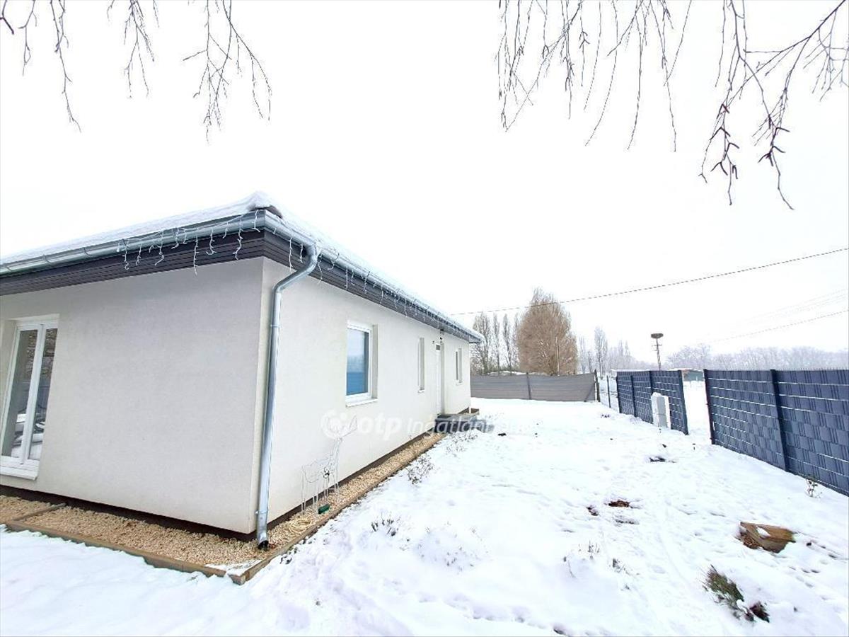 Bács-Kiskun vármegye, Kecskemét, Kisfái városrészen 91 m2 hasznos nettó alapterületű, 2024-ben épült újszerű könnyűszerkezetes családi ház 1440 m2 nagyságú telken eladó. a korszerű német szabványos kvh fa szerkezetű, energiatakarékos családi ház beton alapon gipszkarton, OSB-lap, gerenda közben 12 cm formahab kitöltéssel, külső OSB-lap borítással, 10 cm-es homlokzati kőzetgyapot és nemesvakolat zárású rétegrenddel épült. Födéme fa szerkezet között 20-25 cm hab befúvásos isocell hőszigeteléssel és gipszkarton álmennyezettel kivitelezett. a fa tetőszerkezet Bramac betoncserepezéssel készült, körben csatornával ellátott. a szerkezetek tűzgátló gipszkarton védelmet kaptak. a külső nyílászárók háromrétegű üvegezéssel és redőny-előkészítéssel kerültek beépítésre, a belső ajtók minőségi átfogó tokos szerkezettel lettek ellátva. a bejáratnál magas minőségű biztonsági rendszerű bejárati ajtó lett beépítve. a házban négy szoba, egy amerikai-konyhás nappali étkezővel, egy előszoba, egy közlekedő, egy fürdőszoba-WC és egy mosókonyha-WC került megépítésre. Az ingatlan a telken szabadon álló, a házból három oldalról a parkosított kertbe jutás biztosított. a közművek közül a háromfázisú villany (3x16 Amper), a 3, 5 KWh teljesítményű napelem-rendszer, a gáz, a vezetékes víz és a zárt rendszerű 10 m3 nagyságú emésztő telken belül megtalálható. Az otthon melegét és a melegvíz ellátást Bosch kondenzációs kombi gázkazán biztosítja padlófűtéses hőleadással, alternatív megoldásként egy inverteres hűtő-fűtő klíma is beszerelésre került. Az otthonban igényes szaniterek, lámpák, beépített konyhabútor gépészettel, TV-fal lettek beépítve, melyek a vételár részét képezik. a belterületi telek körben bekerített, a földes út felől gépjárművek számára kapubejáró biztosított, aszfaltozott út 200 méterre kiépített. Az udvar parkosított, füvesített, a telket az új tulajdonos igény szerint kettéoszthatja 750 m2 nagyságú telkekre, így akár egy újabb 200 m2-es családi ház is építhető rá. Energetikája kiváló, fenntartási költsége villany- és gázfogyasztás tekintetében összesen 4-6000 Ft/hó.Az ingatlan elhelyezkedése kiváló: pár perces autóúttal a város infrastruktúrája elérhető.