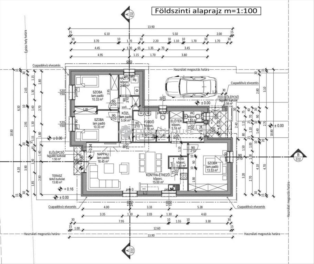 Eladásra kínálunk egy új-építésű, hőszivattyúval felszerelt, kiváló műszaki tartalommal rendelkező, 91 m2-es családi házat. a telek mérete 401 m2, az ár pedig a telekkel együtt értendő, az ár a teraszt nem tartalmazza. a tervek elkészültek, a kivitelezés idő pedig garantált 10 hónap, melyet a kivitelező kötbér ellenében is vállal! a projekt kivitelezői előfinanszírozással is megvásárolható (nem kell előre fizetni), tehát mindig az elkészült, átadott ütem után kell fizetni, illetve a kivitelező szerződésben vállalja, hogy ár garanciát vállal az építményre. a családi ház nettó alapterülete 91 m2, amely tartalmaz:– 4 szobát (amerikai konyha-nappali-étkező + 3 hálószoba);– 1 fürdőszobát, – háztartási helyiséget;– kamrát, – és egy előszobát. Műszaki tartalom:– Teherhordó falazat: Wienerberger Porotherm Profi 30 X-Therm tégla– Homlokzati hőszigetelés: 15 cm– Tetőhéjazat választható: Bramac Római Novo, Leier Toscana vagy Terrán Renova Plus tetőcserép választható színben– Külső nyílászárók: 3 réteg üvegezésű, prémium Gealan s9000 külső nyílászárók, 44 mm-es melegperemes üvegezéssel– Válaszfal: Wienerberger Porotherm 10 tégla válaszfal– Hidegburkolat választható: 8500 Ft / m2- Melegburkolat választható: 8000 Ft / m2- Szaniterek választható: (kád, zuhanykabin, csaptelep stb. ) 700000Ft-ig- Bejárati ajtó választható: Colorplast rátétes intarziás inox betéttel- Teraszajtó: Dupla szárnyas- Beltéri ajtó: Borovi Szcília (cpl) választható színben- Gépészet: Bosch 6000 prémium levegő-víz hőszivattyú vizes padlófűtésselKözművek:– Villany: telek előtt– Csatorna: telek előtt– Víz: telken belülAz ár kulcsrakész állapotban történő átadással értendő, konyhabútor és lámpatestek nélkül!