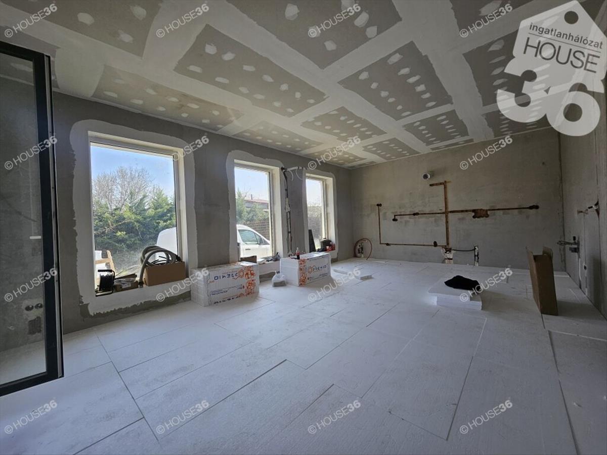 Kecskeméten, a Hunyadiváros új építésű részén, aszfaltozott utcában, hátsó, nyeles, osztott telken (használati megosztással), 519 m2-es, teljesen körbekerített telken, 95, 69 m2-es, nappali + 3 szobás családi ház, 2026 nyári átadással eladó! Jelenleg a ház már tető alatt áll, gépészeti-és burkolási munkák folynak.