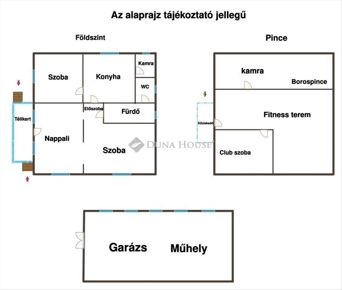 - **Teljes pince (100 m²)** ahol jelenleg egy külön 15 m2-es club szoba található, egy kb 20 m2-es boros pince és a tobbi része fitnesz teremmek van berendezve