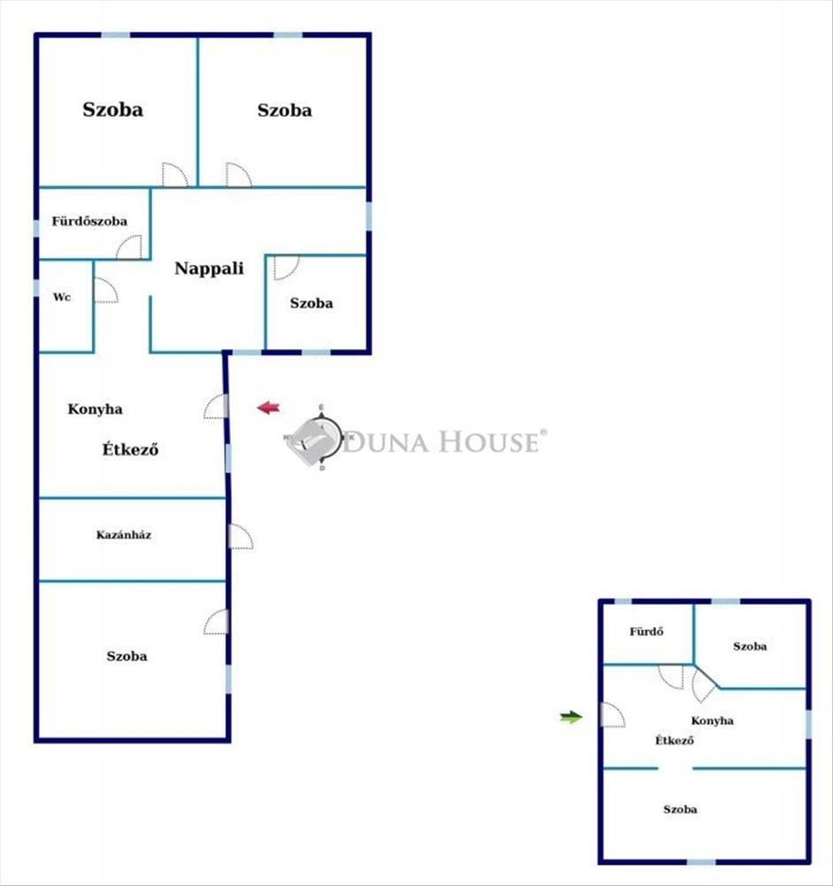 Befektetők! Nagycsaládosok Figyelem! Kecskemét, Szeleifaluban 2 külön bejáratú ingatlan, 2 utcáról megközelíthető telken eladó. a ház főbb felújításokon átesett, apróbb javítással, festéssel költözhetőek az ingatlanok. a 110 m2-es főépület betonalapon, egyik része vályogból, az utólag hozzáépített rész téglából épült. a 2010-ben felújított nappali + 3 szobából álló épületben a meleget gázfűtés mellett vegyes tüzelésű kazán és kandalló biztosítja. Az ablakok, villanyvezetékek, vízvezetékek cserélve lettek. a különálló kisebb 50 m2-es házban nappali + 1 szoba, konyha, fürdőszoba kapott helyet. Sok lehetőséget rejt magában, nézzük meg, ne maradjon le róla! FIX 3% lakáshitelre megvehető