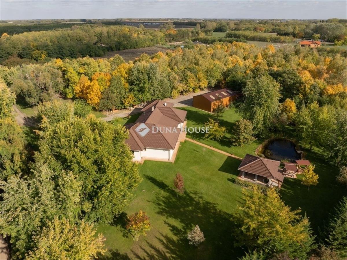 Eladó különleges családi ház igazi arborétum jellegű birtokon Kecskeméten! Kecskemét városához közel, a Ladánybenei út folytatásában, páratlan lehetőség várja új tulajdonosát: egy nappali + 3 szobás családi ház, 21. 000 M²-es, álomszerű, beállt növényzettel parkosított, intim telken, erdővel, halastóval és kivételes adottságokkal. Főbb jellemzők: Tágas nappali + 3 hálószoba, külön gardrób, kamra, és háztartási helyiség 2 fürdőszoba ideális nagycsaládosoknak is és a szauna pedig páratlan lehetőség a hétköznapi rohanó életmód mellett a relaxálásra Dupla garázs, valamint 4 állásos, 4 méter magas géptároló és műhely Egyedi gyártású cserépkályha a meghitt téli estékhez, valamint gázcirkó fűtés padlófűtéssel a használati víz városi vízről megoldott, a fúrt kút a locsolást biztosítja automata öntözőrendszerrel kiépítve Fedett kerti kiülő víz- és áramkiállással tökéletes helyszín baráti összejövetelekhez ami alatt egy pince is kiépítésre került Bámulatos erdős terület és saját halastó a természet szerelmeseinekEz az ingatlan nemcsak otthon, hanem életstílus is: tökéletes választás mindazoknak, akik nyugalomra, térre és természetközeli környezetre vágynak mégis elérhető közelségben Kecskemét belvárosától. Ne hagyja ki ezt az egyedi lehetőséget! További információért vagy megtekintésért hívjon bizalommal.Kis Virág vagyok, az Arany János utca iroda képviseletében mint örökös tag
