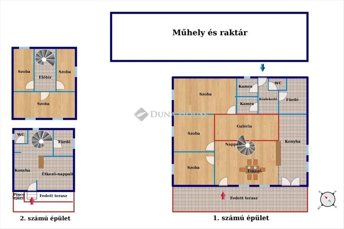 - 1. Számú épület nappali + 3 szoba + 20 m2-es galéria