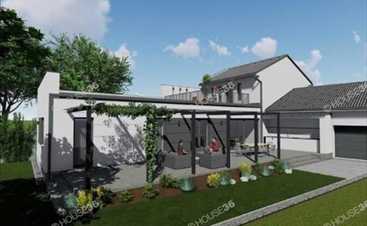 Az összközműves, betonos utcában található, 501 m2-es telekre egy 252 m2-es prémium minőségű 2 szintes házat terveztek.