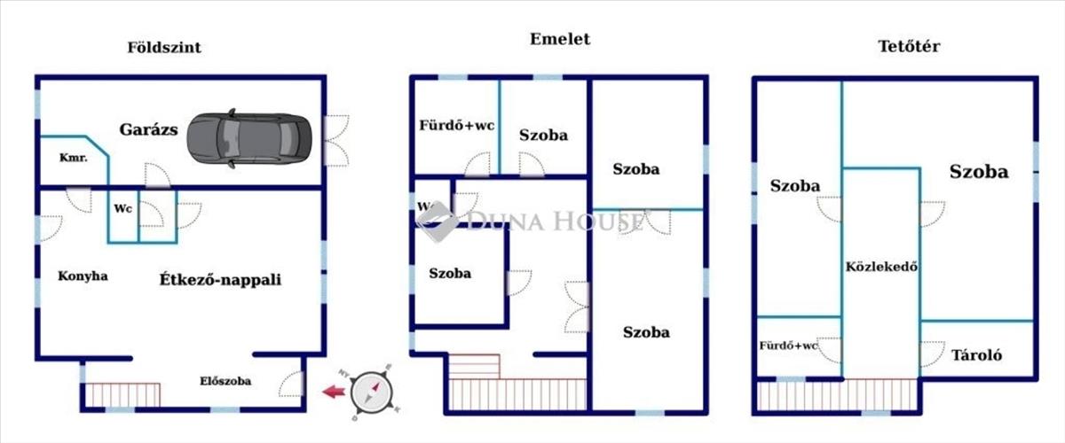Az összes szinten található 2 nappali+5 hálószoba és 2 fürdőszoba melyek nagyon szép állapotban vannak.