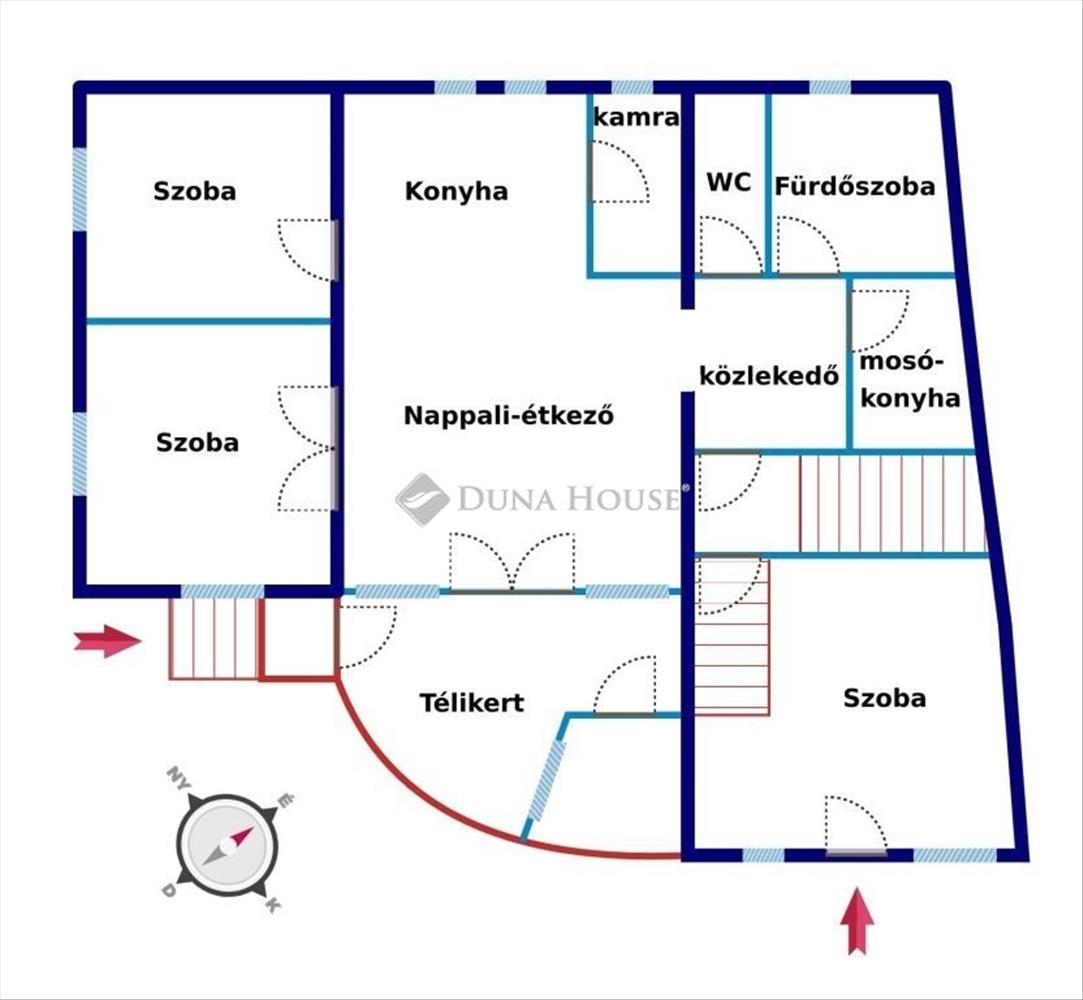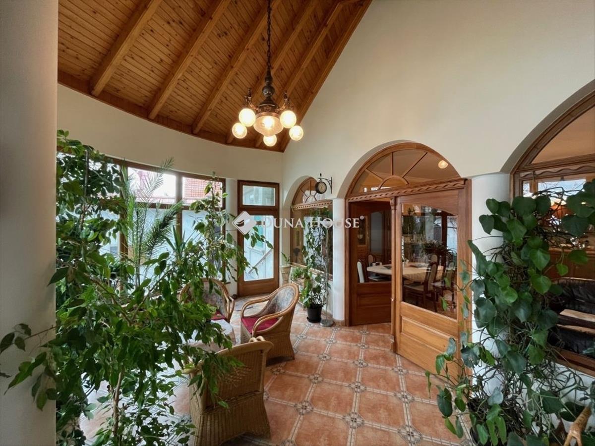 Egy hangulatos télikerten keresztül juthatunk az épületbe. a földszinten tágas amerikai konyhás nappali étkezővel, 2 hálószoba, kamra, fürdő, külön wc és mosókonyha található.