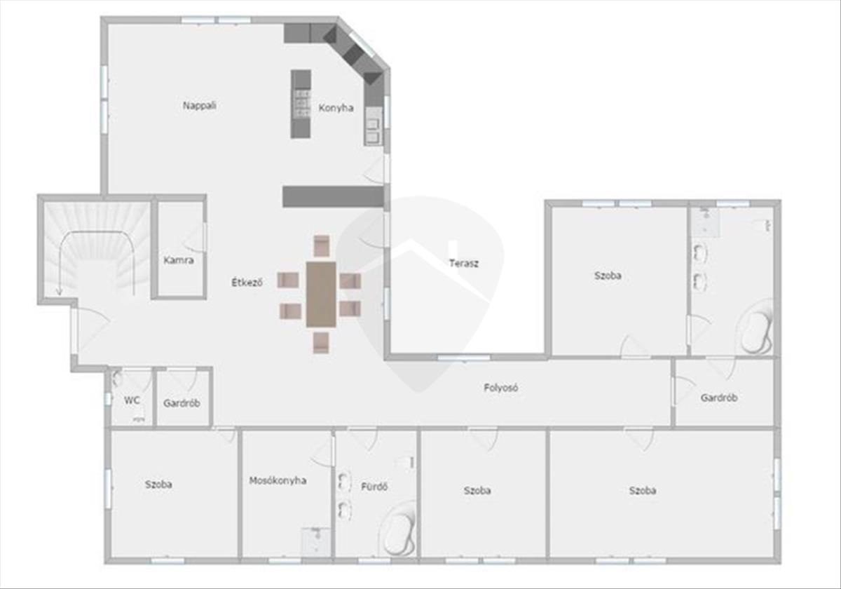 - Felső szinten : hatalmas nappali+konyha+ebédlő+terasz+téli kert +4 db nagy szoba+2 db fürdőszoba.