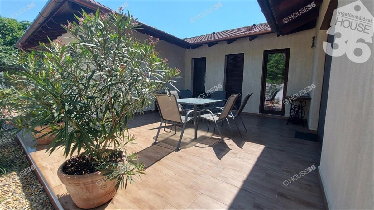 -burkolt 26 m2-es terasz, 12 m2-es melléképület + sütögető, bográcsozó, épített kemence