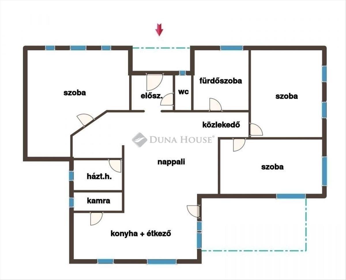 A praktikus elosztásnak köszönhetően az otthon 4 szobát kínál, amerikai konyhás nappalit - étkezővel, 3 hálószobát, fürdőszobát, háztartási helyiséget, kamrát, előszobát és egy burkolt teraszt.