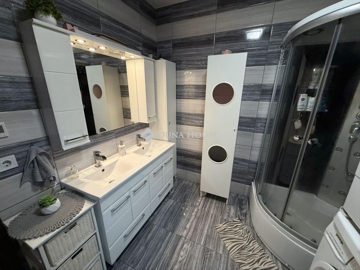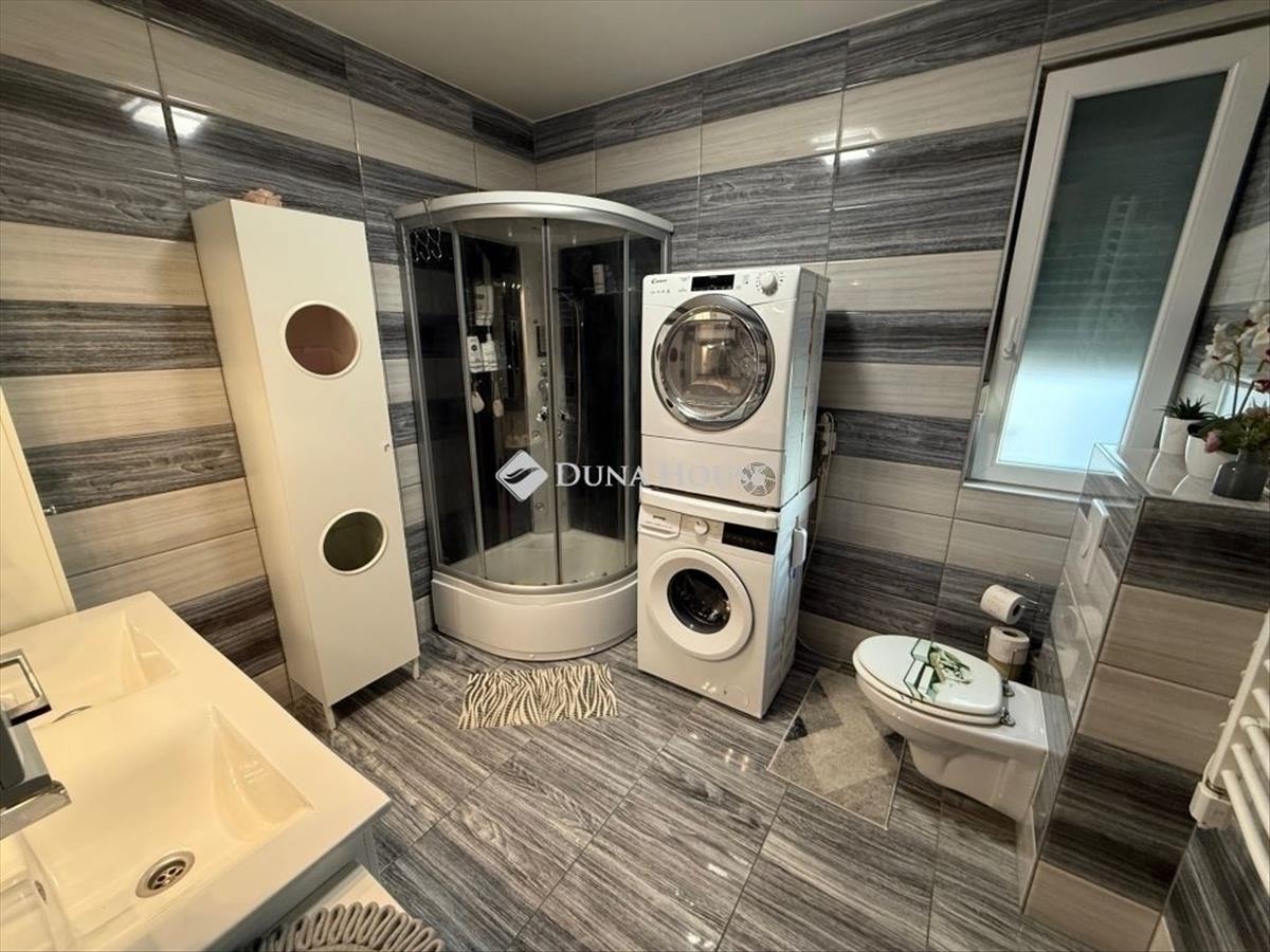Mindezek mellet korszerű és energiatakarékos is, az 5. 6 KW-os napelem rendszernek a magas minőségű hang és hőszigetelt nyílászáróknak, és modern építési módnak köszönhetően. a családi ház udvarában helyett kapott egy dupla fedett autóbeálló, ami kíválóan mutat a hatalmas térkövezett, pálmákkal és gyönyörű növényekkel díszített udvarban. Az elhelyezkedése kiváló, csendes környék, gyors bejutás a belvárosba, iskola, óvoda, sportolási lehetőségek a közelben.