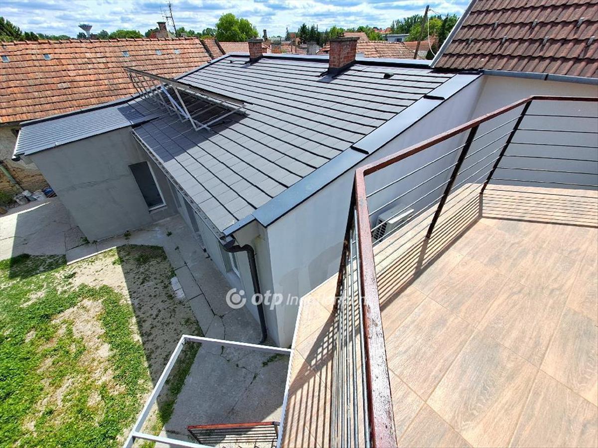Bács-Kiskun vármegye, Kecskemét, Máriaváros részen 109 m2 hasznos alapterületű kétszintes családi ház 58 m2 pincével, garázzsal és egy különálló épületben kialakított 42 m2 nagyságú lakás saját garázzsal, összesen 252 m2 telekrésszel, 504 m2 osztatlan közös tulajdonú telken eladó. Az ingatlan tulajdonosai használati megosztási megállapodással rendelkeznek, a két lakóépület külön bejárása megoldott. a tégla építésű összkomfortos kétrendbeli családi ház a városrész csendes kertvárosi lakóövezetében, két aszfaltozott út által határolt saroktelken helyezkedik el, ennek megfelelően a garázsok is két utcáról külön közelíthetőek meg. a kétszintes ház földszintjén egy nappali, egy szoba, egy félszoba, egy konyha, egy kamra, egy fürdőszoba, egy WC-helyiség és két közlekedő kapott helyet. Az emeleti részen a közlekedőből nyíló két szobát, egy fürdőszoba-WC helyiséget, egy gardrób helyiséget és egy 8 m2-es erkélyt találunk. a szobák laminált padló-, a többi helyiség járólap borítást kaptak. a nyílászárók és a bejárati ajtók újracserélt műanyagok, az ablakok hőszigetelt üvegezésűek, redőnnyel ellátottak, a belső ajtók jó állapotú fa szerkezetűek. a családi ház beton alapon tégla falazattal, beton födémmel, hőszigetelt homlokzattal, a tető fa szerkezeten beton héjazattal készült. Az otthon melegét és melegvíz ellátását Bosch kombi gáz-cirkó kazán biztosítja, radiátoros hőleadással, alternatív fűtésként az emeleten gázkonvektor is rendelkezésre áll. Az épület alagsorában egy belső és egy külső lejárattal rendelkező, több részre osztott 58 m2-es száraz pince található. a ház mellett közvetlenül egy 13 m2-es garázs kapott helyet. a telekrészen a földszinti különálló lakóépületben egy nappali, egy szoba, egy konyha, egy fürdőszoba, egy WC-helyiség és egy garázs kapott helyet. Ez az épület is tégla szerkezetű, a villany- és a vízellátás rendszerének kiépítése új, fűtése hőszivattyús klímával és fali panelekkel készült, valamint az új tetőszerkezet antracit cserepezést kapott. Az udvar rendezett, körbekerített, kapubejáró a gépjárművek számára két utcáról megoldott.Az ingatlan közelében néhány száz méteren belül minden megtalálható: többféle munkalehetőség, élelmiszerbolt, Spar, Lidl, iskola, óvoda, posta, bank, gyógyszertár, egészségügyi intézmény. Az ingatlan üres, birtokba adása teljes vételár kifizetését követően azonnal lehetséges.