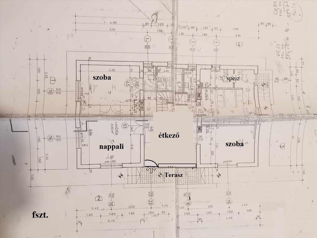 - Első szint 85m2: 3szoba, nappali, konyha, speiz, fürdő,