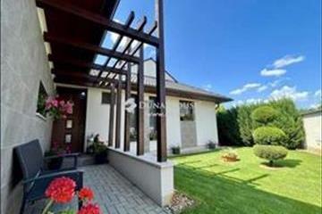 Az udvaron gyönyörű pázsit, ciprusok, a gyerekek részére faház, mászófallal, játszótérrel és 16 m2-es kerti tárolóval.