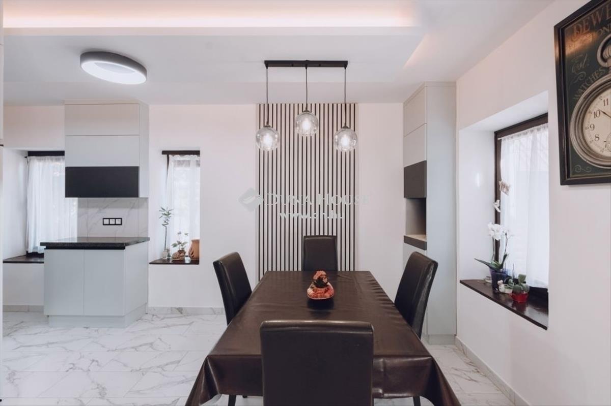 A házba belépve fényes előszoba fogad minket, amely a konyha közelsége miatt könnyedén nagyobb társaság szórakoztatására is alkalmas étkezővé alakítható. a nappali tágas és fénnyel egész nap bőségesen ellátott, télen a meleget padlófűtés mellett látványkandalló biztosítja hőlégbefúvással. Az emeletre feltekintve galériát pillanthatunk meg, a ház minden szeglete egyediséget sugároz.