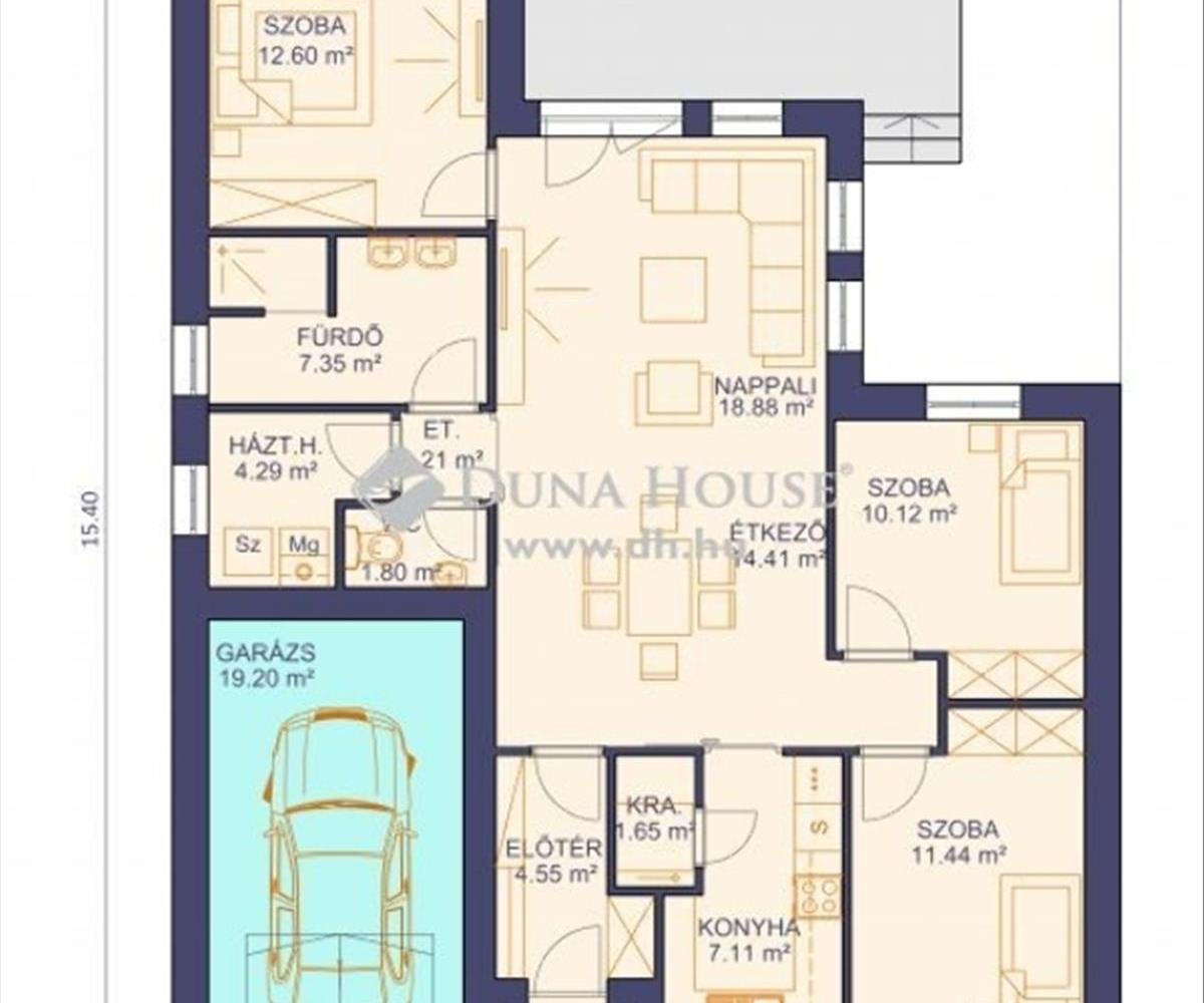 Eladó 95 m2-es új építésű ház Kecskeméten! a telek árát tartalmazza a hirdetési ár! Szeretne egy tégla építésű, modern családi házat, akár 8 hónap alatt?Igenis megvalósítható álmai otthona, ne mondjon le róla! Miért éri meg velünk a házépítés?- a bank belépése után előfinanszírozzuk a házépítést, Önök pedig csak az értékbecslések után fizetnek- ár-garanciát adunk- időgarancia- 5% áfa-t biztosítunk- ingyenes hitelügyintézés- kulcsátadás után 10 év garanciát adunkAz építkezés ideje és menete:1. Elbeszélgetés, elképzelések körvonalazása, előzetes alaprajz2. Telek megvásárlása, ami jelen esetben 26.25 Millió Ft3. Hitelügyintézés4. Alaprajz véglegesítése5. Szerződéskötés6. Tervek kiküldése társ tervezőknek7. Építkezés8. ÁtadásA házépítés tervezési fázisa 6-8 hetet vesz igénybe. a tervek beadását követően 15 naptári napon belül kezdődhet meg az építkezés. Az építkezés nagyban függ az időjárástól és a ház egyedibb kivitelezésétől. Az eddigi tapasztalatok alapján egy egyszerűbb ház elkészítési ideje 8-10 hónap, a tagoltabb házak pedig 10-12 hónap alatt készülnek el. Rövid műszaki tartalmi leírásunk:- teherhordó falazat: Wienerberger Porotherm 30 X-therm tégla- válaszfal: 10 cm es gipszkarton válaszfal- homlokzati hőszigetelés: 15 cm ; lábazat szigetelés 10 cm- födém szigetelés: 30-35 cm- tetőhéjazat választható: Bramac, Leier vagy Terrán tetőcserép 10 színben- külső nyílászárók: 3 üvegrétegű Gealan Német prémium; kívül-belül fehér színben; belül –műanyag -kívül fehér alumínium párkánnyal- hidegburkolat választható: 9.500 Ft / m2- melegburkolat választható: 6.500 Ft / m2- szaniterre költhető összeg: 100 m2- ig 600.000Ft ; /100 m2 felett 650.000 Ft- beltéri ajtó választható: 100.000Ft-igAjándék napelem 2,5 kw-ig vagy klíma 3 szoba + nappali helyiségbe megújuló energiakéntTermészetesen ezektől eltérő igények is teljesítésre kerülnek, egyedi árazás után. Telek jellemzői:- belterület- 720 m2- 30%-os beépíthetőség- villany, víz telken belül- gáz telekhatárnál- 5,5 m épületmagasságAmennyiben felkeltette érdeklődését, hívjon bátran! Biztosan találunk megoldást!A teljes Duna House ingatlan kínálatával állok rendelkezésére! Hitelügyintézés, Energetika?Keressen bizalommal! FIX 3% lakáshitelre megvehető