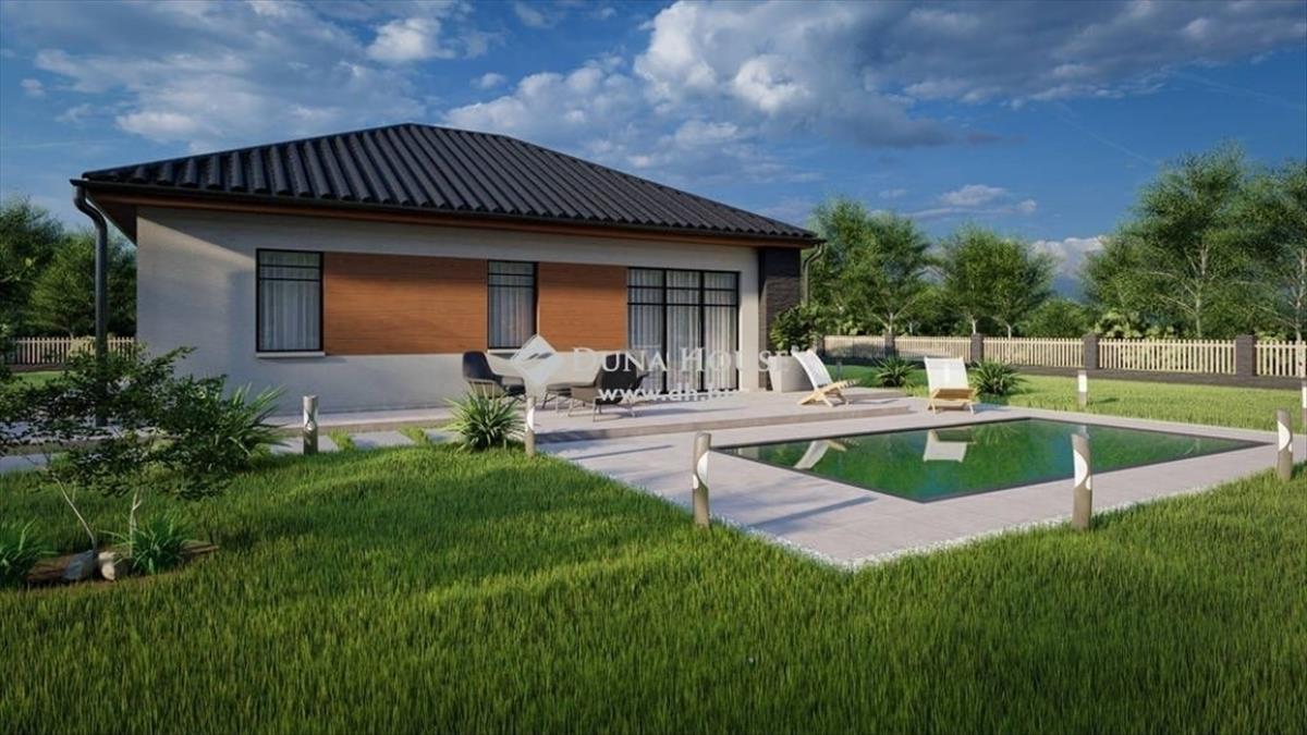 Tulajdonságok:- Nappali + konyha - étkező- 2 hálószoba ( + 1 szoba kialakítható )- Fürdő és wc külön helyiségben- Terasz, kerítés, térkövezés, kertépítés. . . Stb igény esetén lehetséges ( egyedi árazást igényel )Az ár kulcsrakész átadással értendő, konyhabútor és lámpatestek nélkül, a telek árát TARTALMAZZA!