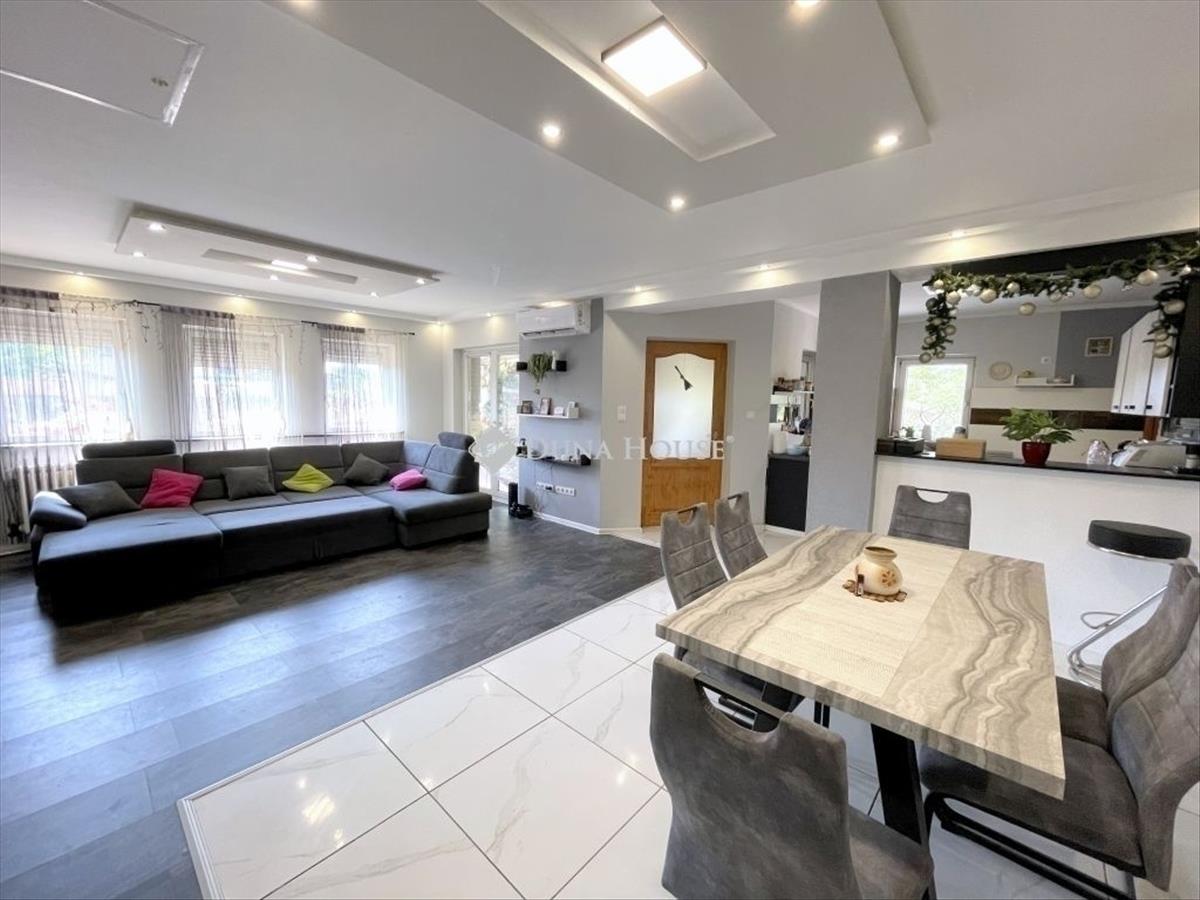 * * * 2012-Ben épült nappali + 5 szobás, szigetelt, napelemmel felszerelt családi ház 2877 nm -es telken * * *Eladásra kínálunk Kecskemét - Hetényegyházán egy 2012-ben épült, folyamatosan karban tartott nappali + 5 szobás családi házat 5 autó részére alkalmas fedett beállóval, akár több generáció együttélését is biztosító, különálló épületben található teljesen felújított lakrésszel. Az ingatlan 2877 nm -es kivett lakóház, udvar besorolású, nem kifüggesztés köteles! Elhelyezkedés:Az ingatlan elhelyezkedése kiváló aszfaltos úttól kb 150 méter jó minőségű földúton megközelíthető, autópálya felhajtó, belváros gyorsan elérhető. a ház csendes utcában található, rendezett környezetben. Telek:A 2877 nm -es önálló helyrajzi számon található telek körbekerített, városi víz, gáz, villany közművel rendelkezik. Mérete miatt a hátsó részen található önálló épület amely felújított és frissen kialakított akár le is választható külön bejárattal az utcafrontról. Épületek:A főépület 2012-ben épült épült tégla falazatú, szigetelt( 12 cm). a lakóház rendkívül jó elosztású, jelen állapotában nappali + 5 szobás kialakítású, a tetőtérben további 2 szoba került kialakításra amennyiben szükséges lenne, ezek megközelítésére a nappaliból lehet lehetőség. a főépület előtt hangulatos 18 nm es fedett terasz került kialakításra. a főépülethez kapcsolódóan található egy tároló és a mosókonyha ami közvetlen a házból vagy az udvarról is megközelíthető. Gépkocsik tárolására 2 különálló könnyűszerkezetes fedett beálló szolgál ahol 5 autó is kényelmesen parkolhat. a telek végében egy felújított és átépített állapotú külön épület található, ami akár önálló lakrészként is szolgálhat, fürdő és konyha is kialakításra került benne illetve a fűtés/hűtés is megoldott. a lakótér rendkívül jó elosztása miatt akár nagyobb család részére is ideális választás az ingatlan. LakóházFöldszintes kialakítás, jelen állapotában nappali + 5 szoba ( tetőtérben további 2 szoba kialakításra került), lakótér 125, 8 nm ( + tetőtérben 2 szoba ) + 18 nm terasz + 18 nm mosókonyha és tárolóMelléképület- a kert végében található felújított különálló épület, 33nm -es lakhatásra alkalmas, fürdővel/konyhával felszerelt. Telken belüli elhelyezkedéséből adódóan, akár teljesen leválasztható udvarral is használható, utcafronti bejárattal. - 2 Db könnyűszerkezetes, fedett gépkocsi tároló amelyekben 5 autó is kényelmesen elfér. Műszaki paraméterek és jellemzők:- 2012-ben épült tégla falazatú épület + szigetelés + nemesvakolat- Tető beton cseréppel fedett- Műanyag nyílászárók, redőnnyel- Tágas nappali- 8 kw napelemrendszer- 5, 5 kw és 3, 5 kw-os hűtő/fűtő klíma- Többféle fűtési lehetőség ( vegyes kazán, gáz církó, klíma, norvég panel)- Beépített tágas konyha- Led lámpák- Fürdőszobában sarokkád és tusoló- 3 X 25 Amper- Elektromos kapu- Külső kamerarendszer- Fúrt kút- városi víz, gáz, villany közművek- 33 nm -es önálló épület/lakrész hűtő/fűtő klímával, elektromos padlófűtéssel, konyhával, fürdővelAz ingatlan kitűnő választás amennyiben élhető terekkel rendelkező kertvárosi hangulatú nagy családi házat keres jól megközelíthető helyen, rendezett környezetben, pihenésre és kikapcsolódásra is tökéletesen kialakítható nagy telken. Az ingatlan per, teher és igénymentes, gyorsan birtokba vehető! Az ingatlan kizárólag előzetes egyeztetés alapján, értékesítővel tekinthető meg! Szolgáltatásaink:- Díjmentes, bankfüggetlen csok, babaváró és hitelügyintézés- Díjmentes ingatlan értékmeghatározás- Megbízható, teljeskörű ügyvédi háttér biztosítása- Értékbecslés- Energetikai tanúsítvány készítés- Házépítés megbízható generálkivitelezővel