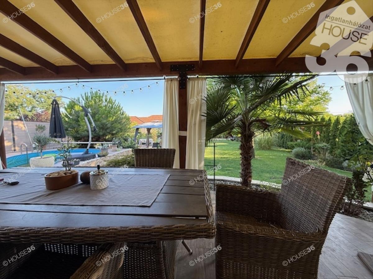 Kecskemét vonzáskörzetében Ballószögön, 2016-ban épült, Nappali + 4 szobás családi ház, 1301 m2-es telken, gyönyörű kerttel, medencével, 60 m2-es fedett terasszal, dupla garázzsal eladó!Jellemzői: