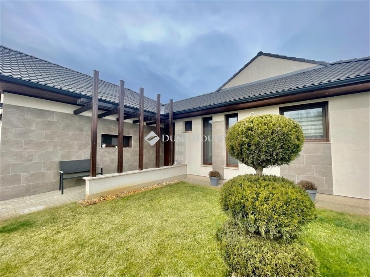 Fantasztikus ajánlat a Petőfivárosból!Eladó Kecskemét egyik legkedveltebb városrészében, közvetlen betonút mellett, 2016-ban épült, 145 m2 hasznos alapterületű, nappali + 3 szobás +gardrób + háztartási helyiség elosztású, egyszintes családi ház, dupla garázzsal, terasszal, térkövezett és gyönyörűen parkosított 1. 439 m2 területtel! Az udvaron gyönyörű pázsit, ciprusok, a gyerekek részére faház, mászófallal, játszótérrel és 16 m2-es kerti tárolóval. FIX 3% lakáshitelre megvehető