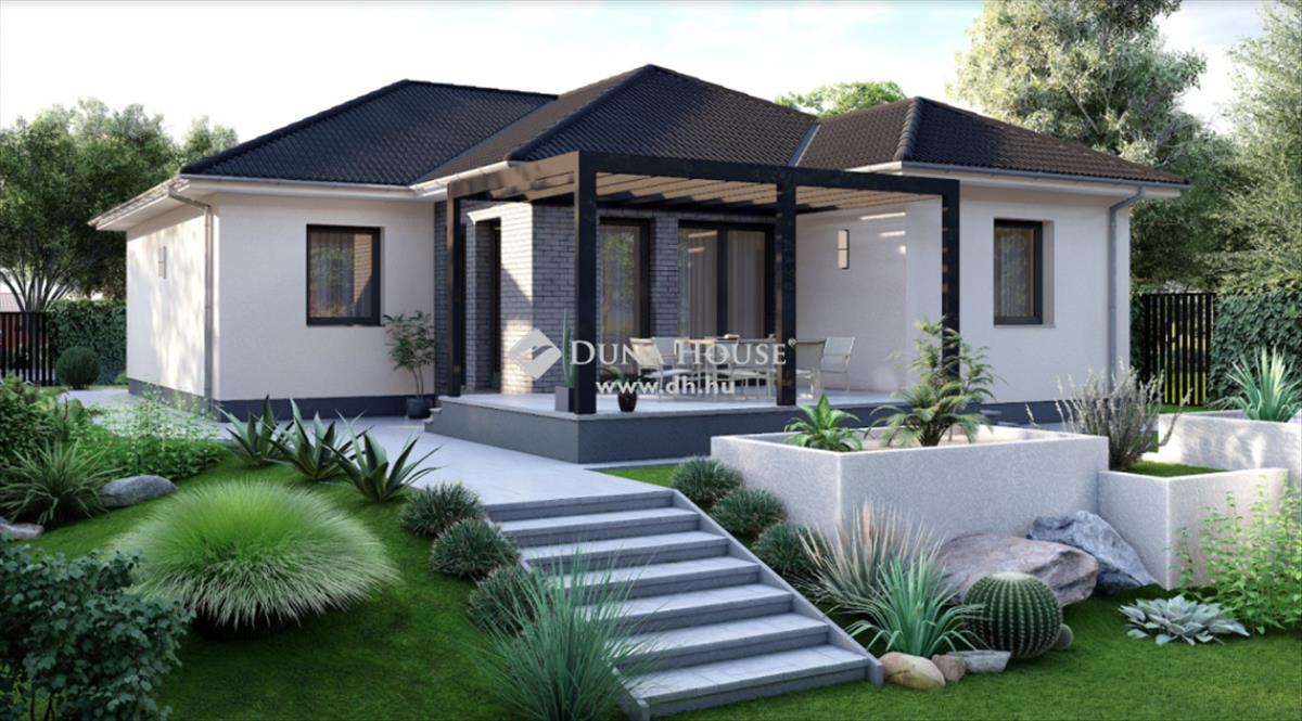 Eladó 95 m2-es új építésű ház Kecskeméten! a telek árát tartalmazza a hirdetési ár! Szeretne egy tégla építésű, modern családi házat, akár 8 hónap alatt? Igenis megvalósítható álmai otthona, ne mondjon le róla! Miért éri meg velünk a házépítés? - a bank belépése után előfinanszírozzuk a házépítést, Önök pedig csak az értékbecslések után fizetnek- ár-garanciát adunk- időgarancia- 5% ÁFA-t biztosítunk- ingyenes hitelügyintézés- kulcsátadás után 10 év garanciát adunkAz építkezés ideje és menete:1. Elbeszélgetés, elképzelések körvonalazása, előzetes alaprajz2. Telek megvásárlása, ami jelen esetben 26. 25 Millió Ft3. Hitelügyintézés4. Alaprajz véglegesítése5. Szerződéskötés6. Tervek kiküldése társ tervezőknek7. Építkezés8. ÁtadásA házépítés tervezési fázisa 6-8 hetet vesz igénybe. a tervek beadását követően 15 naptári napon belül kezdődhet meg az építkezés. Az építkezés nagyban függ az időjárástól és a ház egyedibb kivitelezésétől. Az eddigi tapasztalatok alapján egy egyszerűbb ház elkészítési ideje 8-10 hónap, a tagoltabb házak pedig 10-12 hónap alatt készülnek el. Rövid műszaki tartalmi leírásunk:- teherhordó falazat: Wienerberger Porotherm 30 X-therm tégla- válaszfal: 10 cm es gipszkarton válaszfal- homlokzati hőszigetelés: 15 cm ; lábazat szigetelés 10 cm- födém szigetelés: 30-35 cm- tetőhéjazat választható: Bramac, Leier vagy Terrán tetőcserép 10 színben- külső nyílászárók: 3 üvegrétegű Gealan Német prémium; kívül-belül fehér színben; belül –műanyag -kívül fehér alumínium párkánnyal- hidegburkolat választható: 9. 500 Ft / m2- melegburkolat választható: 6. 500 Ft / m2- szaniterre költhető összeg: 100 m2- ig 600. 000Ft ; /100 m2 felett 650. 000 Ft- beltéri ajtó választható: 100. 000Ft-igAjándék napelem 2, 5 kw-ig vagy klíma 3 szoba + nappali helyiségbe megújuló energiakéntTermészetesen ezektől eltérő igények is teljesítésre kerülnek, egyedi árazás után. Telek jellemzői:- belterület- 720 m2- 30%-os beépíthetőség- villany, víz telken belül- gáz telekhatárnál- 5, 5 m épületmagasságAmennyiben felkeltette érdeklődését, hívjon bátran! Biztosan találunk megoldást! FIX 3% lakáshitelre megvehető