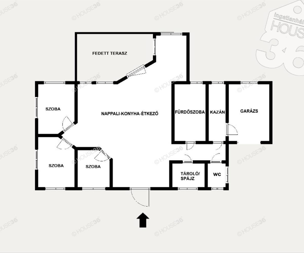 Helyiségek. 3 Szoba, nappali-étkező-konyha egy légtérben, spájz, fürdőszoba, külön wc