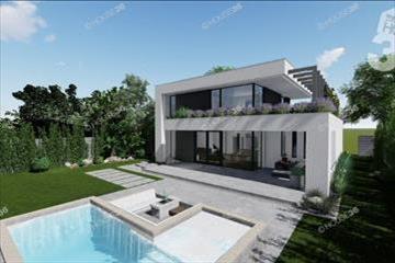 Az összközműves, 900 m2-es telekre egy 126 m2-es prémium minőségű 2 szintes házat terveztek.