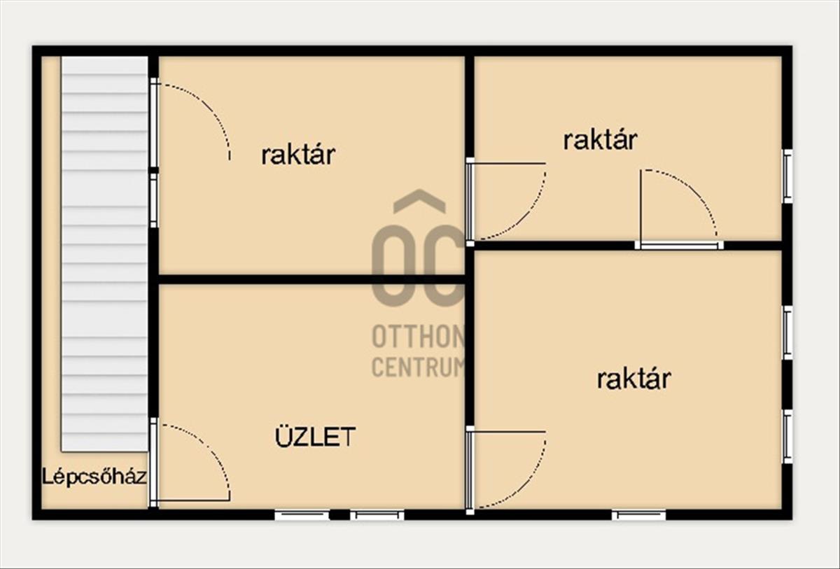 Alsó szint: 90 m2-es üzlethelyiség raktárhelyiségekkel. a földszinti egység üzleti működésre kialakított területként használható, raktározási lehetőségekkel a működés támogatására.