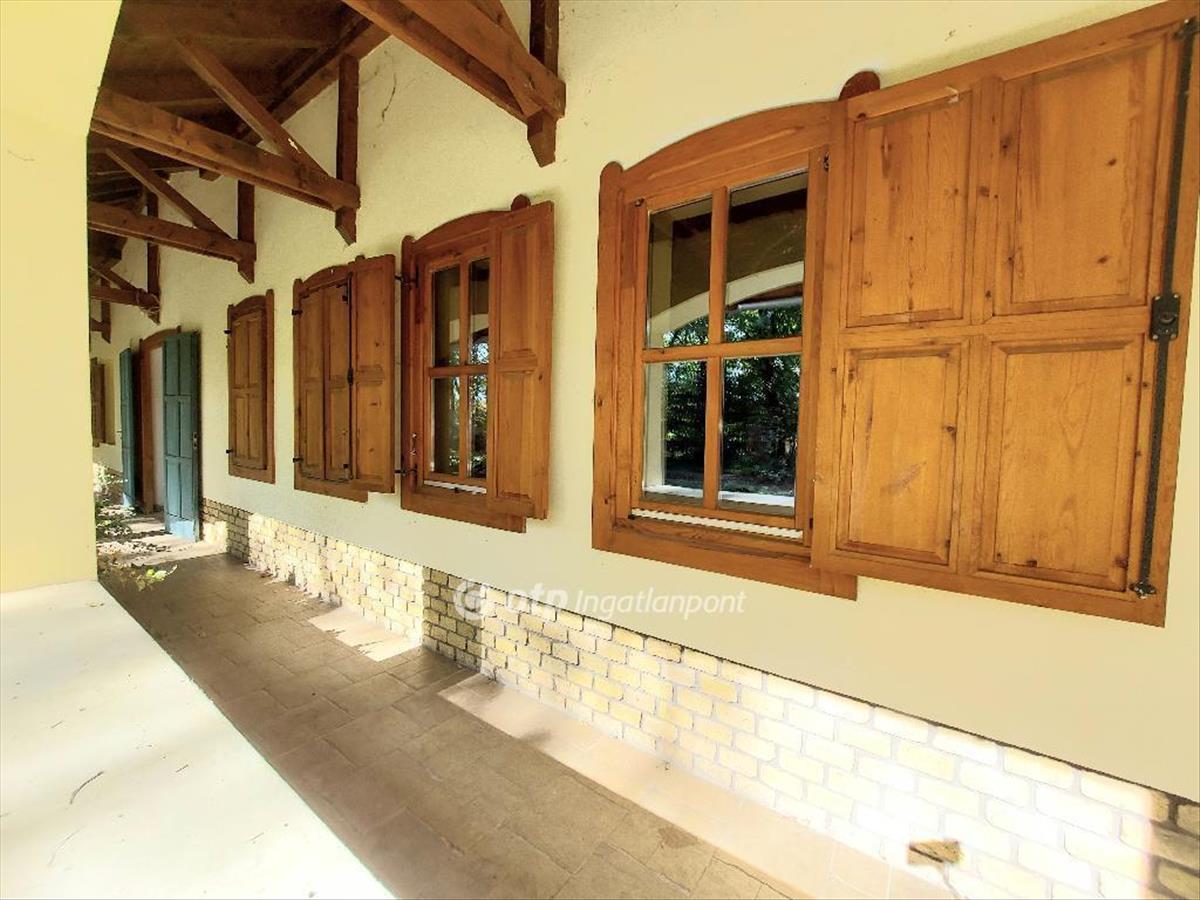 Kecskemét-Hetényegyháza Miklóstelepi részén eladásra kínálunk egy tégla építésű, hőszigetelt, 2004-es évben épült, 262nm-es hasznos alapterületű rusztikus kialakítású családi házat 9386 nm-es ligetes erdős környezetben. a tetőtér beépítéses családi ház földszinti része boltíves kialakítású tornácról közelíthető meg, melyben 1 szoba + 3 félszoba, konyha, előszoba, közlekedő, fürdő, tároló helyiség kapott helyet, míg a tetőtérben egy hobbyszoba, egy lakószoba és egy gardrob helyiség került kialakításra. a főépülethez szorosan kapcsolódik egy 38nm-es két autó beállására alkalmas, szerelőaknás garázs mely egy télikert-madárház kialakítással kapcsolódik a lakóingatlanhoz. a családi ház másik egysége egy tároló kialakítás mely alatt borospincét alakítottak ki. a 3 egységből áll ingatlan, Kecskemét mg-hobbikertes zónájában, az aszfaltúttól 400 m-re található. a közel 1 ha-s, egészében kivett, igényesen kialakított fásított-parkosított és tégla sétányokkal kialakított uton közelíthető meg az ingatlan. Az ingatlan közműves, csatorna hálózata nincs kialakítva ezért zárt szennyvíztároló került kialakításra. Az otthon melegéről gáz cirkó fűtés gondoskodik radiátoros hőleadással, a konyha és a nappali közötti részben egy tégla építésű fatűzelésű kandalló került kialakításra. a ház nem csak külsejében rusztikus kialakítású hanem a lakótér fa mennyezeti része, gerendázata teszi az egész ingatlant egyedivé. FIX 3% lakáshitelre megvehető