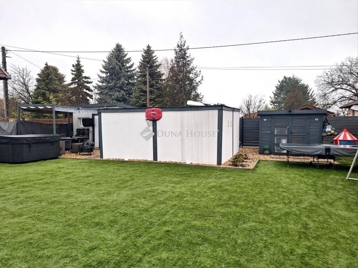 Ez a minden igényt kielégítő otthon Kecskemét - Katonatelep kimondottan csendes utcájában helyezkedik el, mely modern technológiával, energiatakarékos megoldásokkal és kényelmi extrákkal várja új tulajdonosát. Az ingatlan 2017-ben, magas műszaki tartalommal, 2 utcára nyíló 533 m2 telken épült, mely 117 m2 hasznos lakótéren nappali + 4 szobával, egy 9 m2 különálló irodával és a garázst is magába foglaló 30 m2 raktárral rendelkezik. MŰSZAKI tartalom:- n+f 38-as tégla + 25 cm szigetelés- 15 kw szigetüzemű napelem rendszer (1 éves)- Hőszivattyú 9 KW-os Terralux- Vaillant tartalék elektromos kazán- Wifis Ariston okos bojler- Padlófűtés - hűtés- 3 rétegű nyílászárók- 3. 5 KW-os hűtő-fűtő Polár klíma- led mennyezeti lámpák állítható hangulat fényekkel- Pellet kandalló- 1 éves fürdőszoba bútorok és prémium Arezzo csaptelepek- 1 éves komplett konyhabútor- Ipari áram- Központi vízlágyító rendszer- Vörösfenyő kerítés elektromos kapuval- Fúrt kútKÉNYELMI extrák:- Medence teljes gépészettel + 6 KW-os hőszivattyúval- 5 személyes jakuzzi- Fűthető fürdődézsa rozsdamentes fás kazánnal- Solár kültéri zuhanyzó- Riasztó, kamerák, újlenyomatos beléptető rendszer- Az udvar jelenleg műfűvel borított, de az automata öntöző ki van építveAz ingatlan kiváló elhelyezkedésének köszönhetően pár perc sétával elérhető iskola, óvoda, élelmiszerbolt, buszmegálló, stb. a vételára tartalmazza a teljes bútorzatot és berendezést (kivéve tv-k)