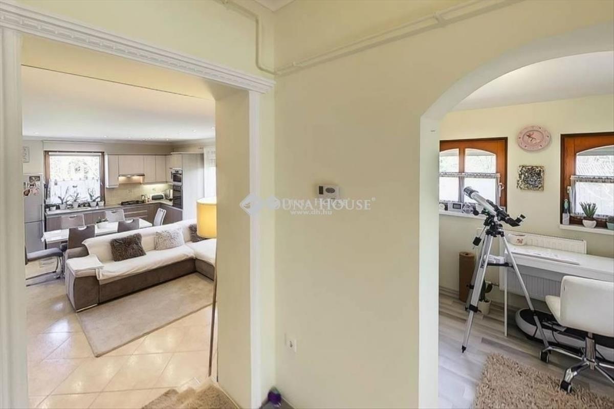 Némi szintkülönbséggel található egy kisebb szoba, gardróbszoba, valamint fürdőszoba (1 éve felújítva), ezáltal akár teljesen el lehet szeparálódni a társassági lakótértől. a lakrész nagyon hangulatos és világos, nappalijából kijárat nyílik a szép parkosított kertjébe.
