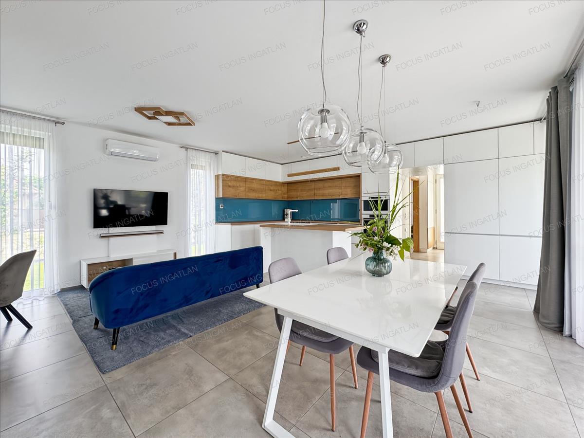 - Központi, hővisszanyerős szellőztető rendszer (légtechnika): Folyamatosan friss, tiszta levegőt garantál az egész házban, energiaveszteség nélkül.