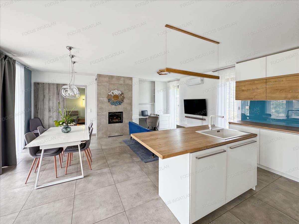 - Hangulatos kandalló: Beépített, szobánkénti hőelosztó szellőzőkkel gondoskodik a kellemes melegről és a meghitt atmoszféráról.
