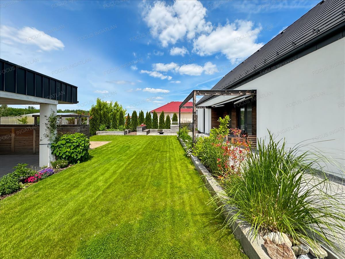 - Gondozott, térkővel burkolt és gyönyörűen parkosított udvar: Automata öntözőrendszerrel és fúrt kúttal a mindig zöldellő környezetért.